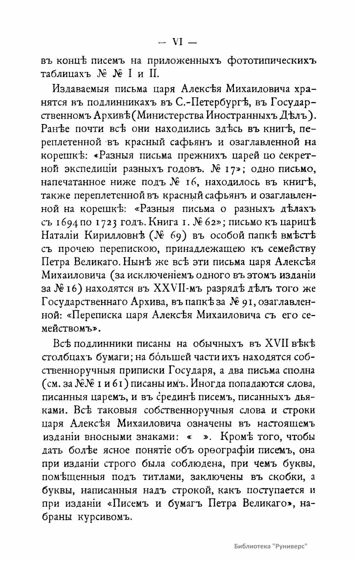 Настоящие письма изданы комиссией печатания государственных грамот и договоров, состоящей при Московском главном архиве министерства иностранных дел. Кроме материалов Главного архива комиссия пользовалась собраниями Государственного архива С.-Петербурга, Императорской публичной библиотеки и Румянцевского музея. Письма русских государей и других особ царского семейства представляют собой любопытный исторический памятник.