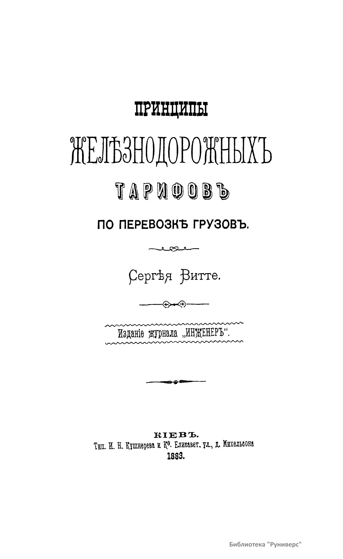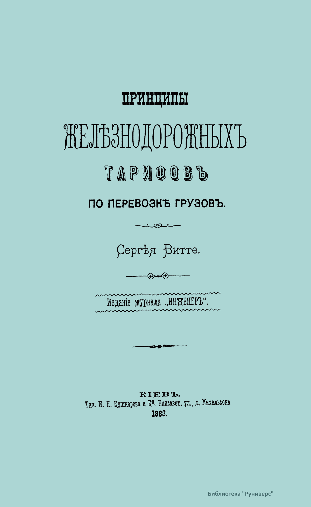 Настоящая книга состоит из статей, помещенных в журнале «Инженер» за 1883 г. Эти статьи представляют первую попытку систематического изложения на русском языке главнейших начал, лежащих в основе железнодорожного тарифного дела. Тарифное дело, вытекающее из всей совокупности экономических и торговых отношений и, в свою очередь, на них влияющее, имеет несомненный интерес как практического, так и теоретического характера. Только изучение и понимание тарифных вопросов во всей их полноте может предохранить учреждения, имеющие влияние на установление тарифов, от таких ошибок, которые должны отозваться значительными убытками или для народа, или для железных дорог, а следовательно, в огромном большинстве случаев и для государственного бюджета. Теоретическая сторона тарифного дела имеет важное значение потому, что практика в подобных государственных вопросах не может не сообразовываться с выводами, основанными на научных данных. Тарифное дело как теория, вытекая прямо из экономического закона спроса и предложения, представляет в своем дальнейшем развитии результаты, зависящие от взаимодействия элементов экономической, политической и даже умственной жизни народа. Эта игра влияний представляет собой в высшей степени интересный предмет для изучений мыслителя и экономиста.