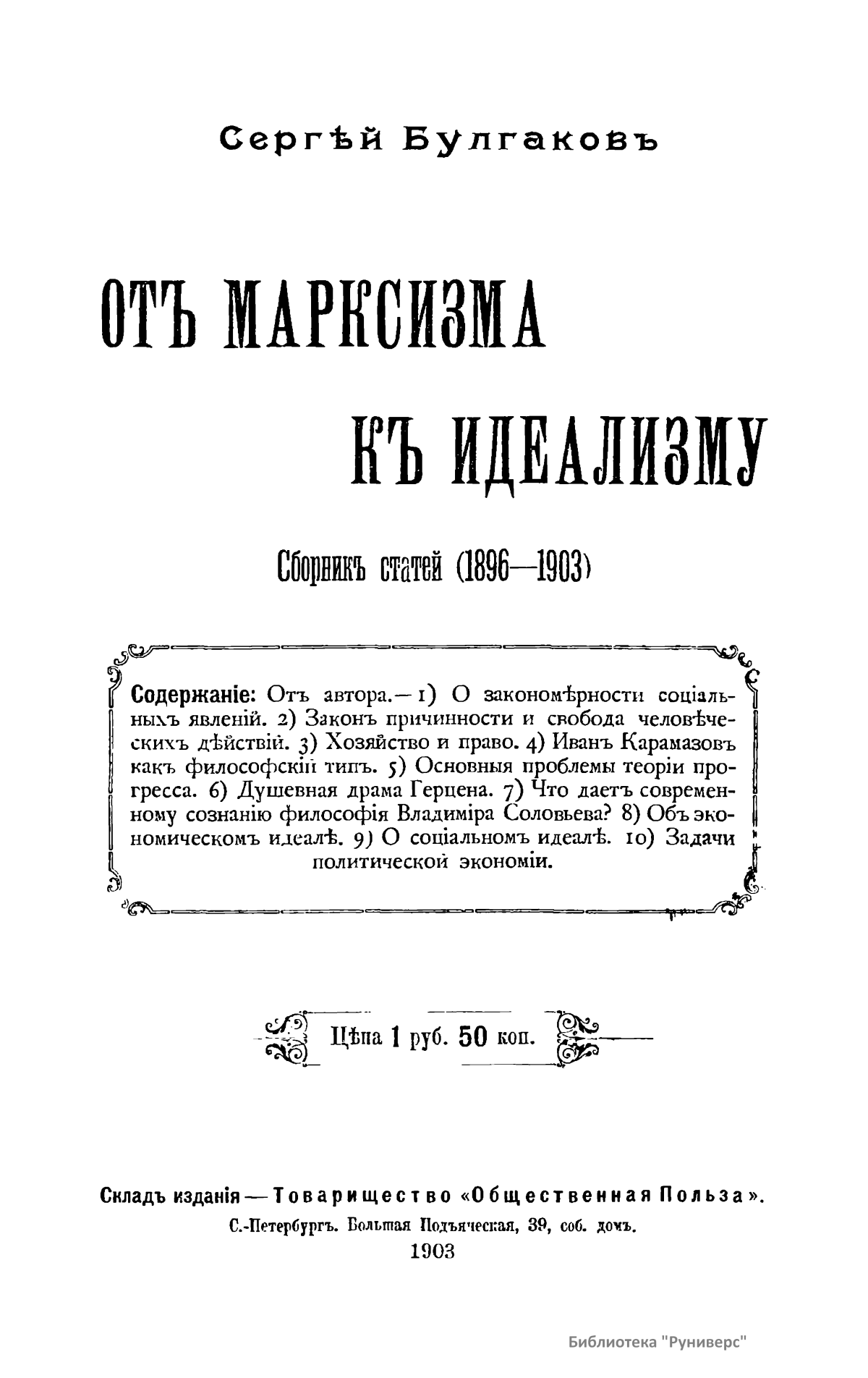 Отъ марксизма къ идеализму. Сборникъ статей (1896-1903)