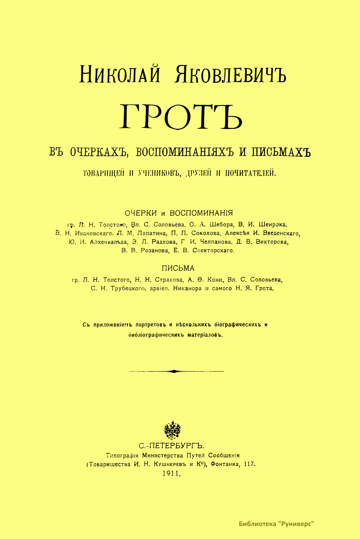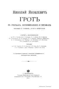 Николай Яковлевичъ Гротъ въ очеркахъ, воспоминанiяхъ и письмахъ товарищей и учениковъ, друзей и почитателей