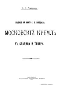Рецензия на книгу С.П. Бартенева: Московский Кремль в старину и теперь