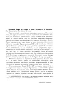 Рецензiя на книгу С.П. Бартенева: Московскiй Кремль въ старину и теперь