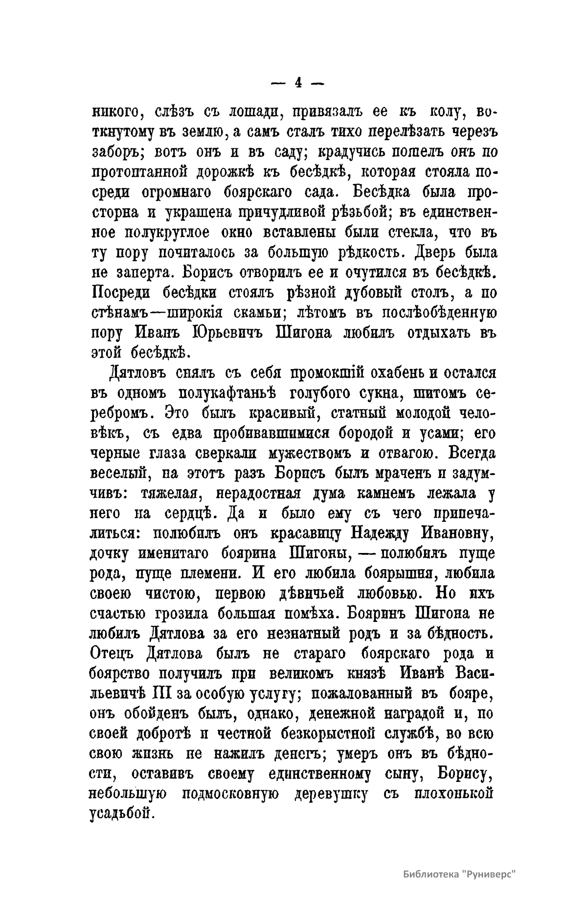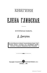 Глинские – княжеский род XV – XVIII вв. В 1508 г. после неудачного восстания в Литве в Россию выехал князь Михаил Львович с братьями. С 1526 г. он стал приближенным великого князя Василия III. Его племянница Елена Васильевна – вторая жена Василия III и великая княгиня (с 1526 г.). В 1533 – 1538 гг. – регентша Русского государства при малолетнем сыне великом князе Иване IV. В правление Елены большую роль в государственных делах играли ее фаворит князь И. Ф. Овчина-Телепнев-Оболенский и митрополит Даниил. Регентство Глинской отмечено успешной борьбой с сепаратизмом удельных князей и бояр (ликвидированы уделы Юрия Дмитровского, Андрея Старицкого в 1537 г., заговоры Андрея Шуйского и Михаила Львовича Глинского в 1533 – 1534 гг.). Правительство Глинской продолжило борьбу против роста монастырского землевладения. В 1535 г. была проведена денежная реформа, в результате которой в государстве была введена единая монетная система. Одновременно проводилось укрепление городов, особенно на западных рубежах. В области внешней политики в результате ряда побед правительство Глинской добилось перемирия с Литвой (1536) при нейтрализации Швеции. Предполагают, что Елена Глинская была отравлена. Настоящее сочинение написано в жанре исторической повести.