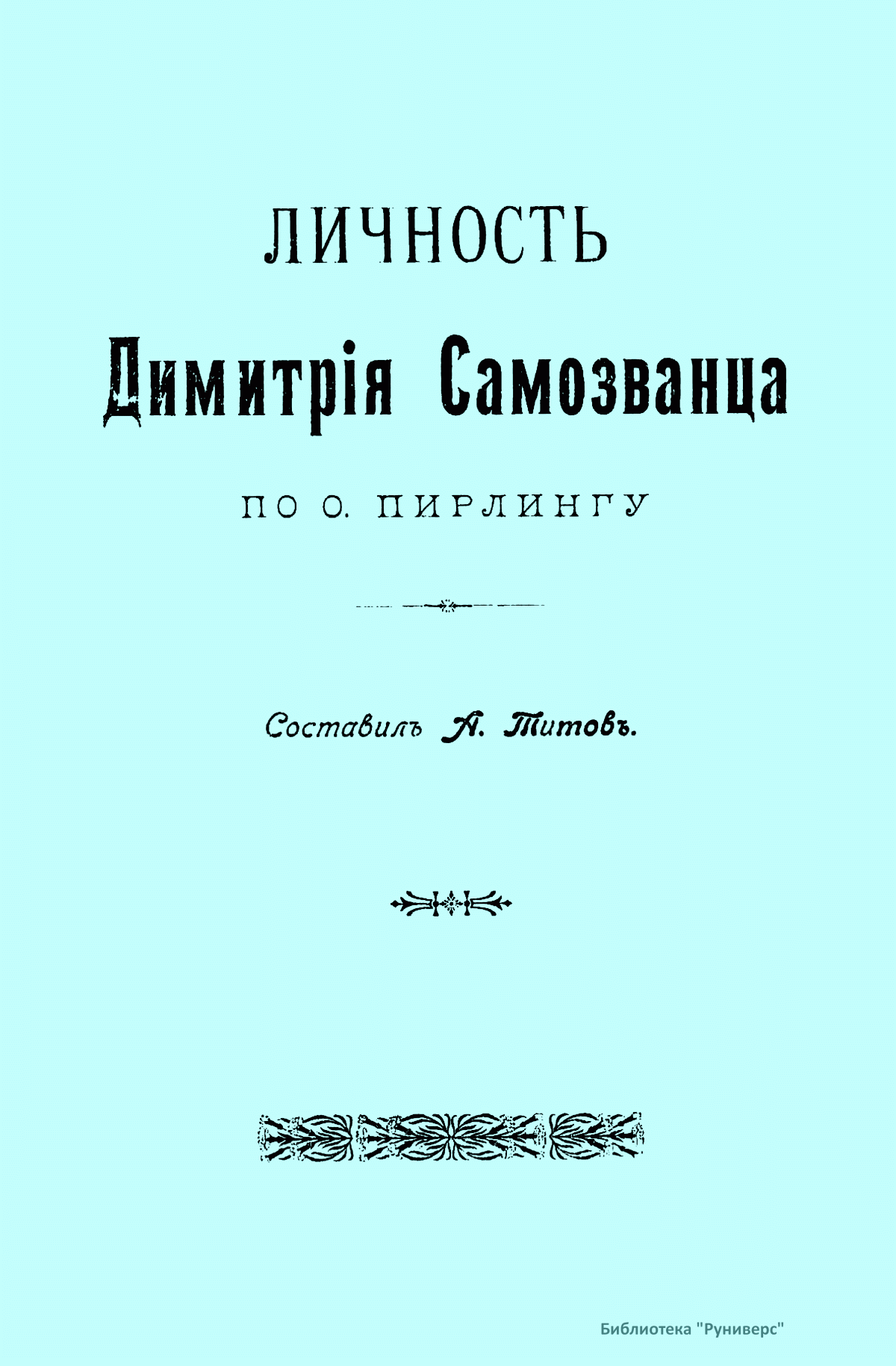 В брошюре излагается взгляд историка-иезуита Павла Пирлинга на проблему личности Лжедмитрия I: был ли Дмитрий действительно сыном Ивана Грозного или это был ловкий самозванец? Его выводы – плод кропотливых изысканий в западных архивах, преимущественно в Ватикане.