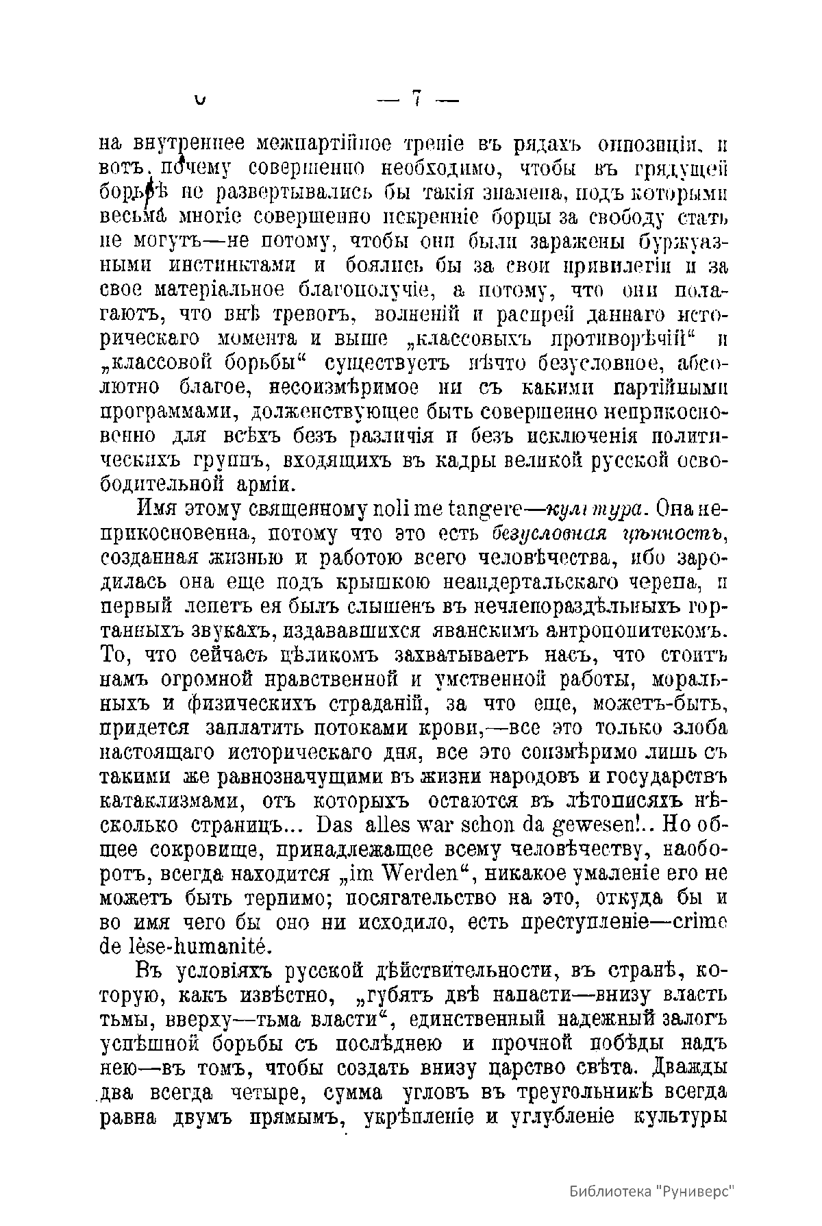 Автор еще в юности был вовлечен в политическое движение (общался с народовольцами, затем вступил в конституционно-демократическую партию, но симпатизировал и более левым партиям), но в годы первой русской революции выступил против нигилистких перегибов в политике. В сданной работе он говорит о том, что при определенных условиях освободительное движение может смениться и худшей из реакций, даже не той, которую делает, опираясь на пулеметы совершенно эмансипировавшийся от всяких правовых понятий и норм военный, а основывающейся на противоречиях психологических – принципиальной невозможности допустить, признать право на существование точки зрения другого. Автор напоминает, что всего более насилия и жестокости совершено было в мире именно теми, кто веровал в спасительность единой доктрины, которая обновит мир, облагодетельствует человечество. Выход, который видит Баженов, один – культура есть безусловная ценность, и укрепление и углубление культуры, укоренение ея в широких массах населения является единственным способом обеспечить нации свободу и право.