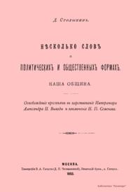 Нѣсколько словъ о политическихъ и общественныхъ формахъ. Наша община