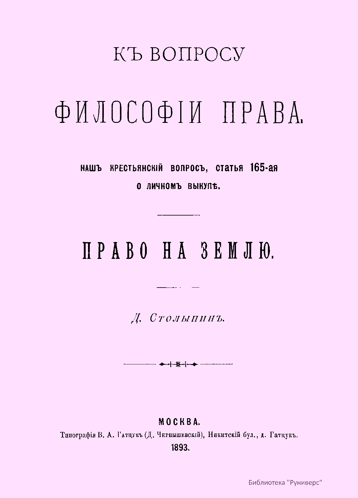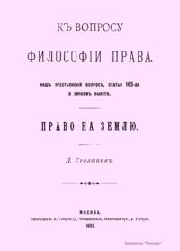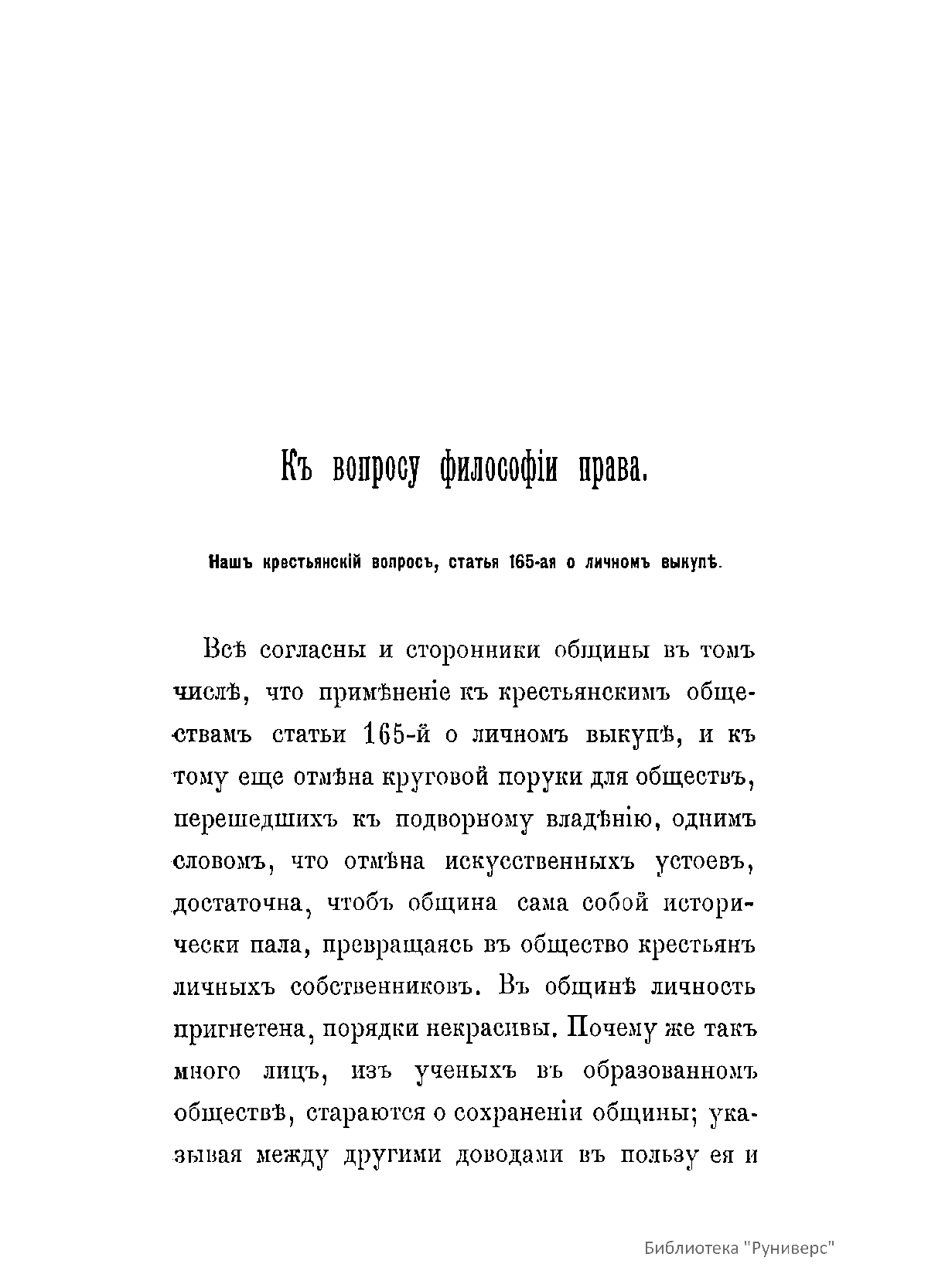 Къ вопросу философiи права. Нашъ крестьянскiй вопросъ, статья 165-ая о личномъ выкупѣ. Право на землю