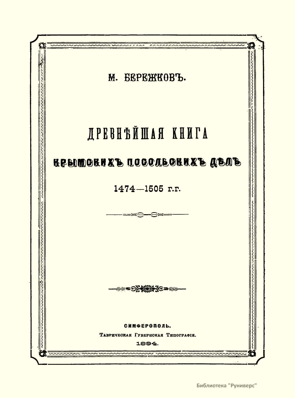 Древнѣйшая книга крымскихъ посольскихъ дѣлъ 1474-1505 г.г.