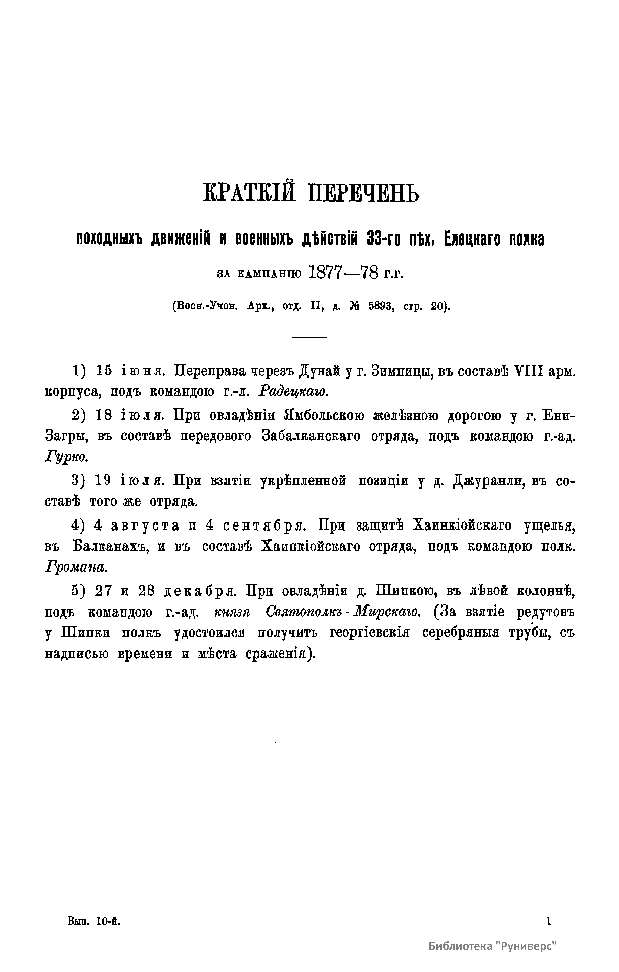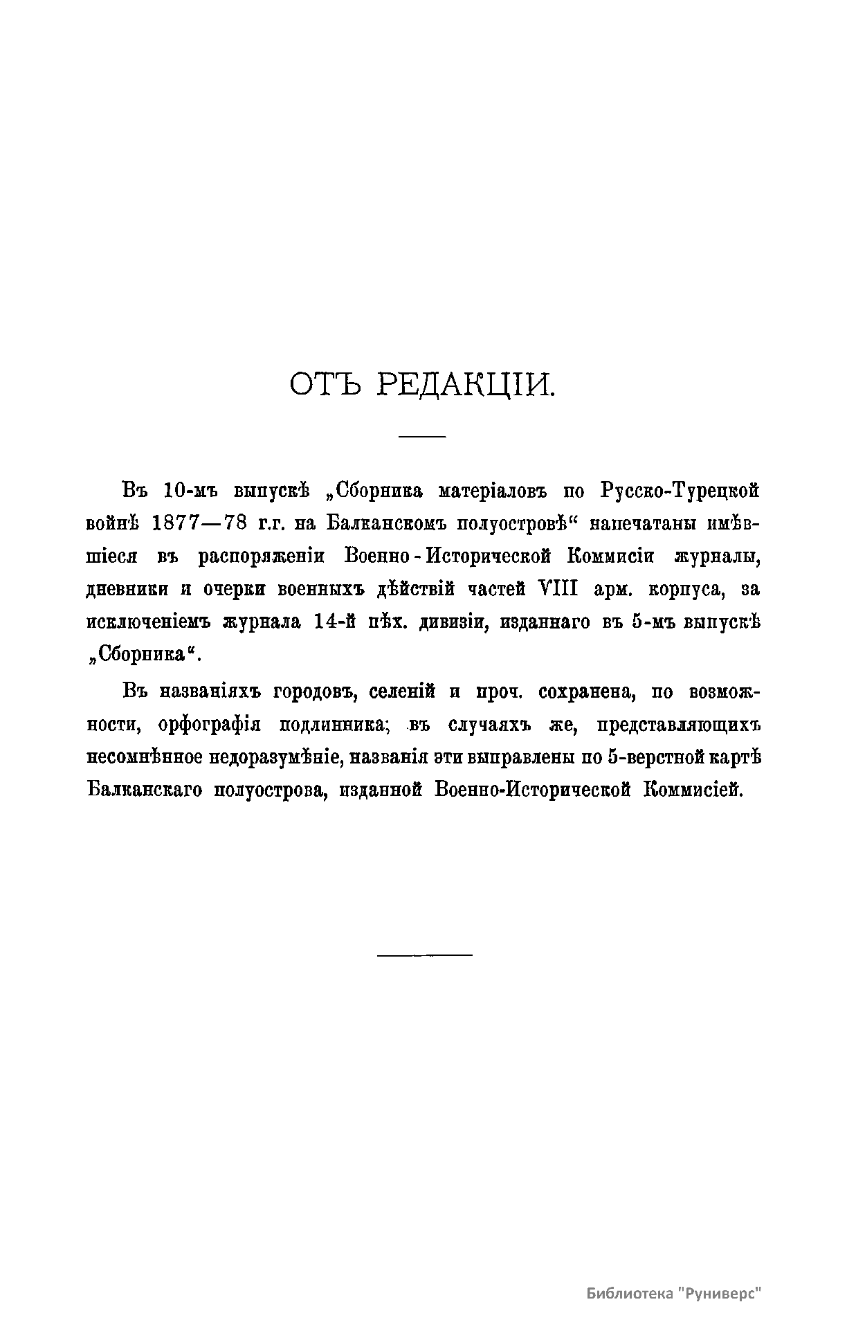 Сборник материалов по русско-турецкой войне 1877-1878 гг. на Балканском полуострове. Выпуск 10. Журналы, дневники и очерки военных действий частей VIII арм. корпуса