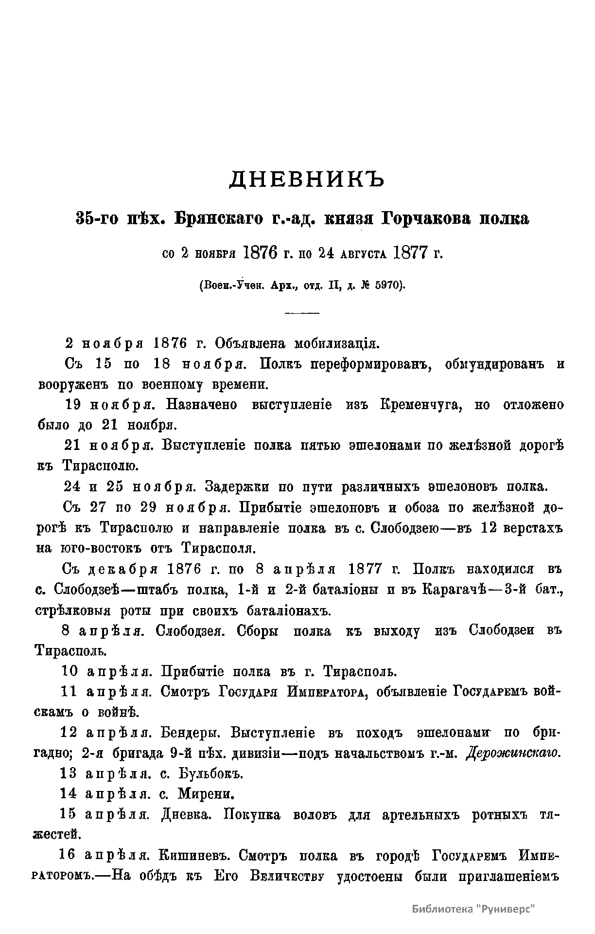 Выпуск 2. Журнал военных действий, веденный в Полевом Штабе
