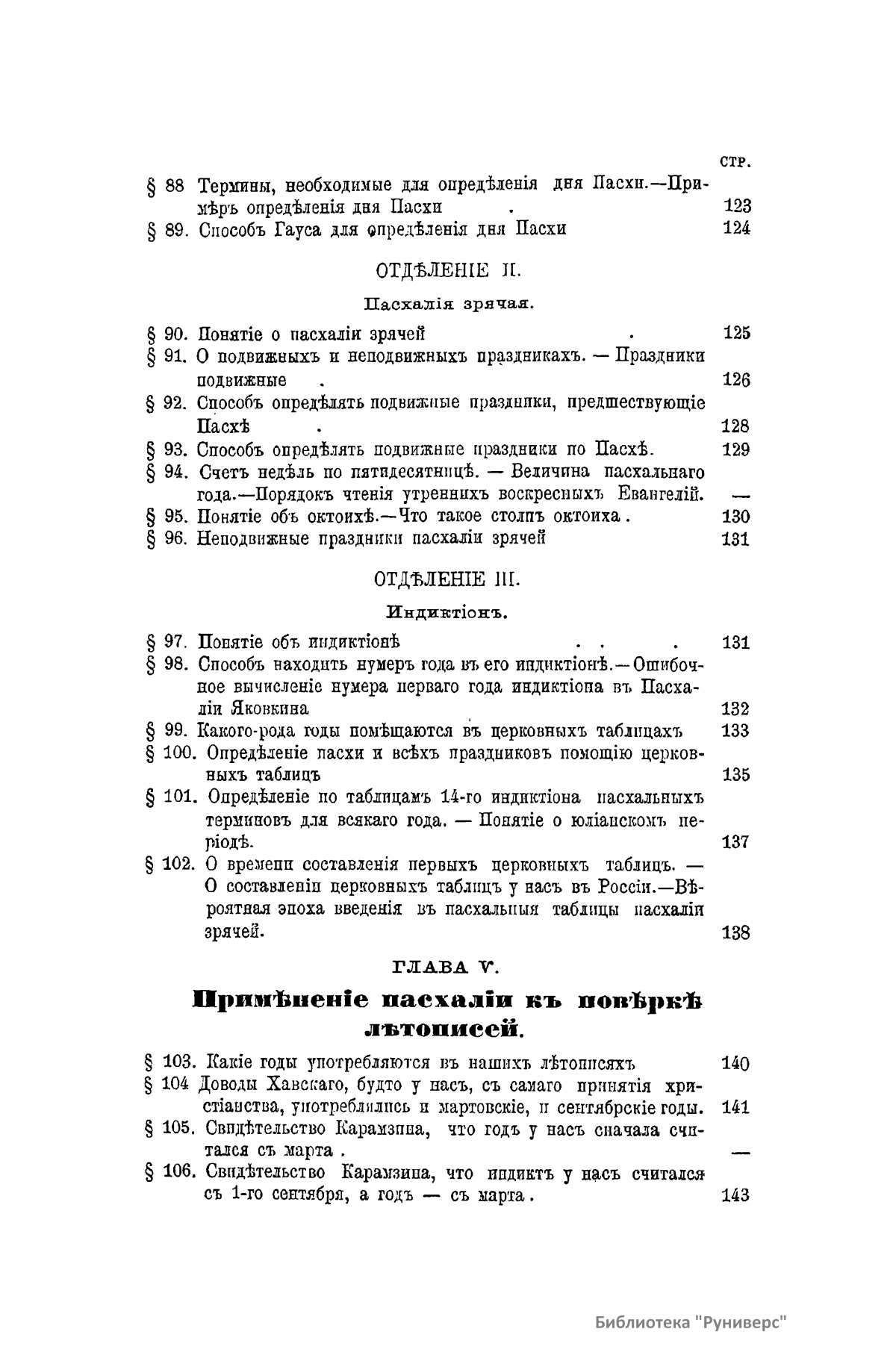 Издание предназначено для тех, кто испытывает потребность в знании правил, на которых основано времясчисление у разных народов. Автор излагает календари народов нехристианских: китайцев, японцев, народов Индокитая, египтян, древних греков, римлян, евреев, магометан; говорит об общих основаниях христианского времясчисления, о времясчислении, принятом Русской православной церковью. Отдельные главы посвящены применению пасхалии к поверке летописей и определению дня Пасхи по правилам Григорианского счисления.