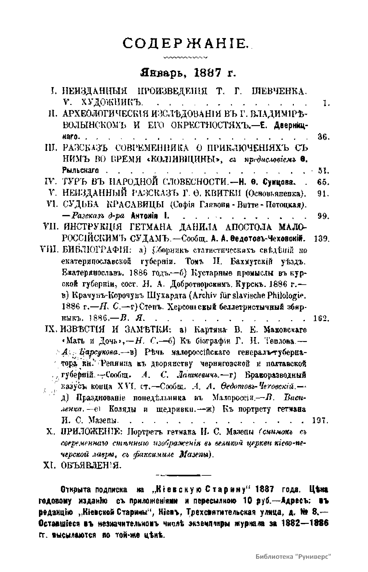 Кiевская старина. Годъ шестой. Томъ XVII. Январь-Апрѣль 1887 г.