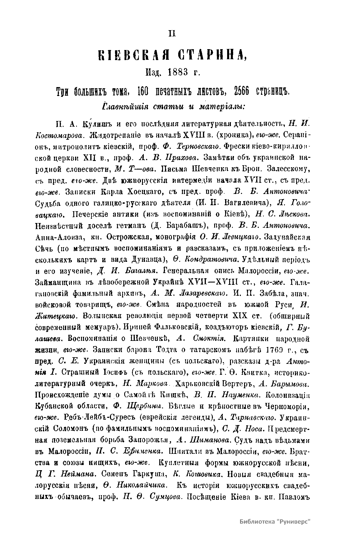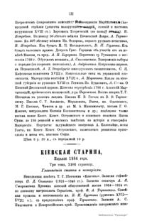 «Киевская старина» - исторический журнал, выходил ежемесячно в Киеве в 1882 – 1906 гг. на русском языке. Основатель и первый редактор – историк Ф.Г. Лебединцев. Публиковал статьи по истории, археологии, этнографии, географии и литературе Украины, документы о видных деятелях украинской культуры (Г.С. Сковороде, И.П. Котляревском, Т.Г. Шевченко и др.) С конца 1890-х гг. в журнале печатались произведения украинских писателей (И. Франко, М. Коцюбинского, Леси Украинки, Панаса Мирного и др.). В журнале принимали участие В.Б. Антонович, Д.И. Багалей, П.С. и А.Я. Ефименко и др. В 1907 г. выходил под названием «Украина» на украинском языке.