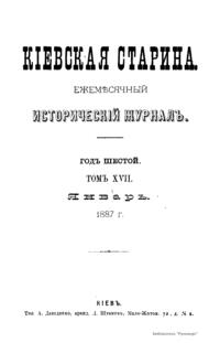 Киевская старина. Год шестой. Том XVII. Январь-Апрель 1887 г.