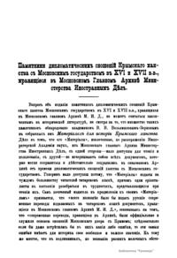 Памятники дипломатических сношений Крымского ханства с Московским государством в XVI и XVII вв.