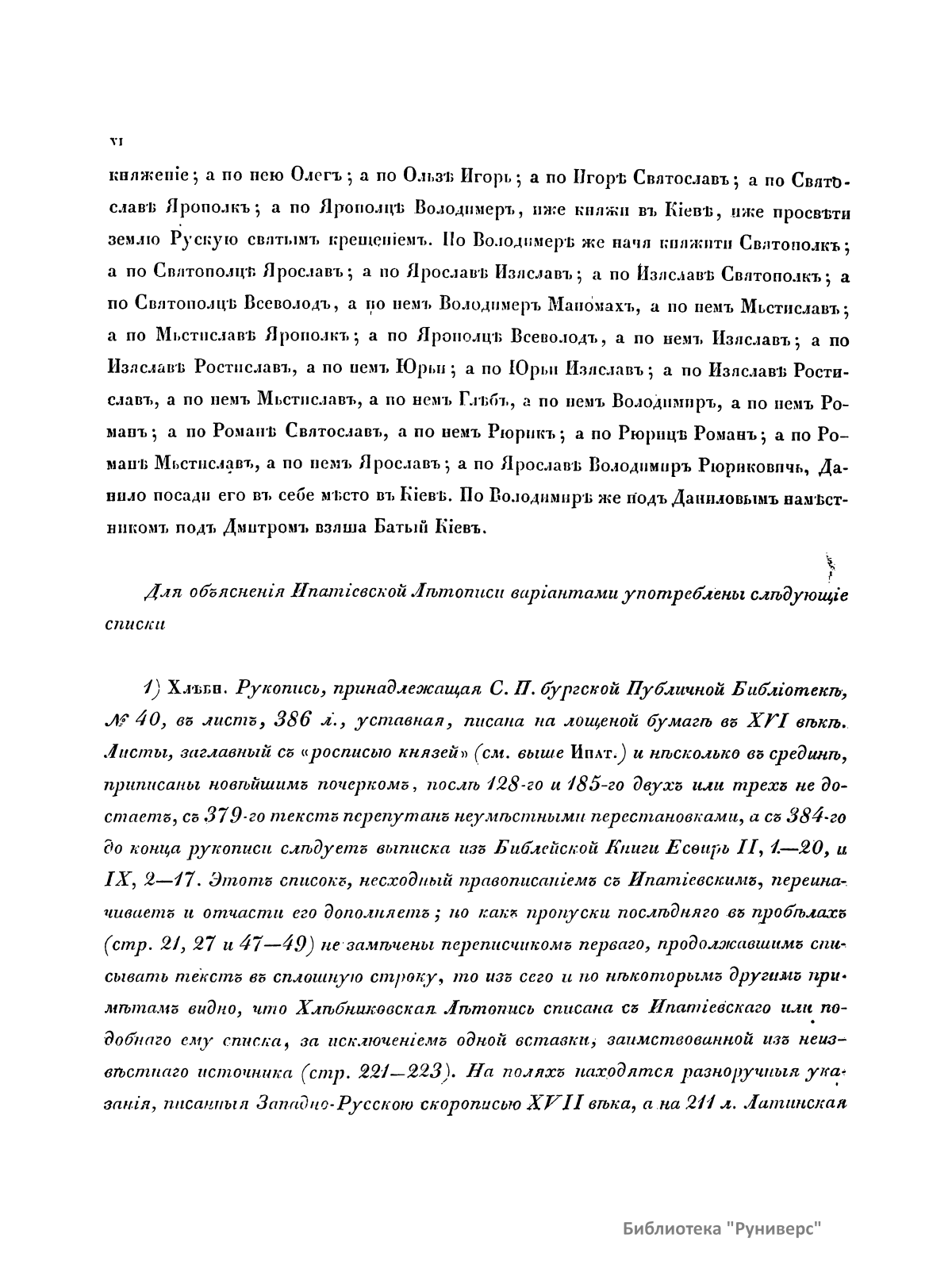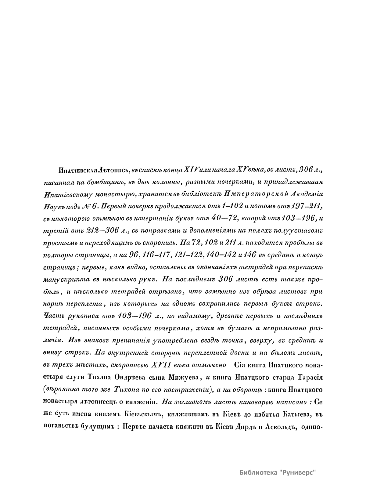 Полное собранiе русскихъ лѣтописей. Томъ второй. III. Ипатiевская лѣтопись
