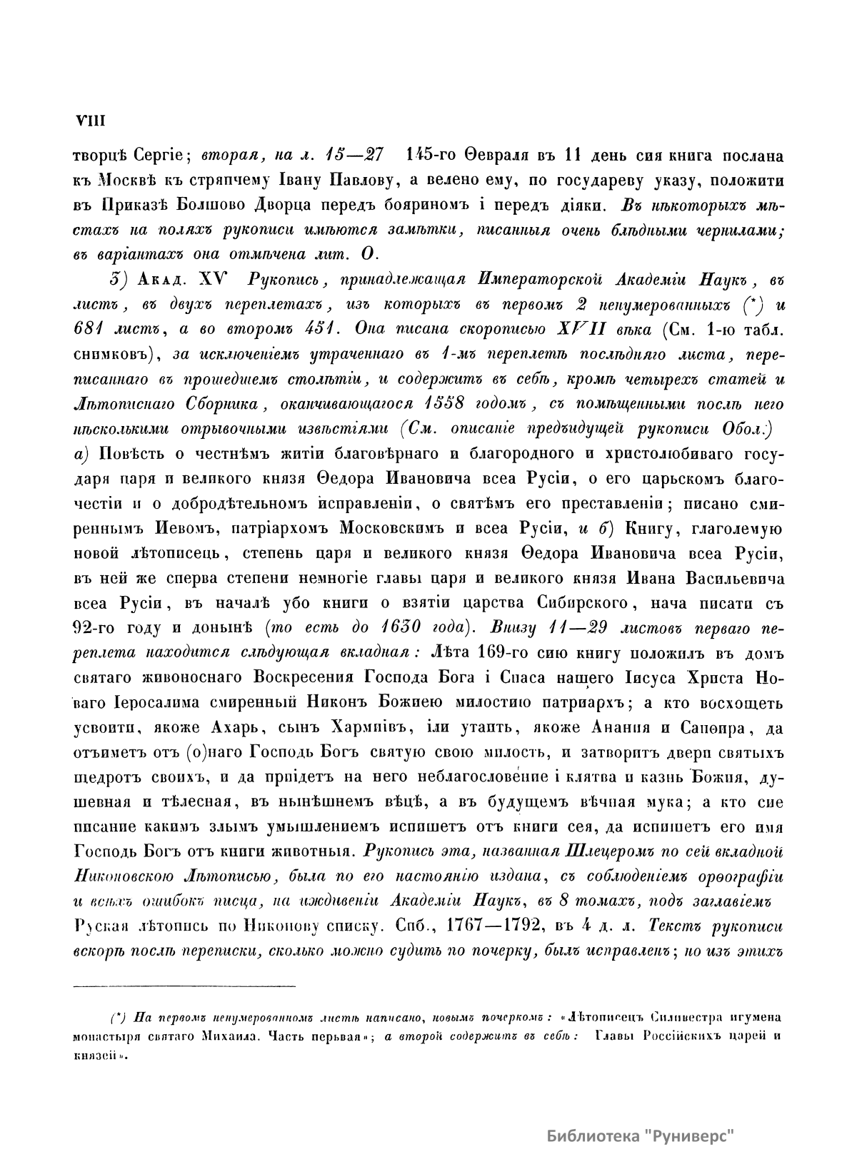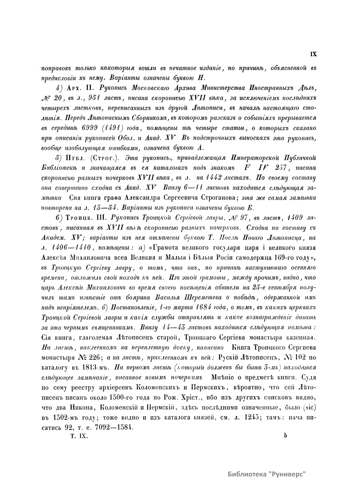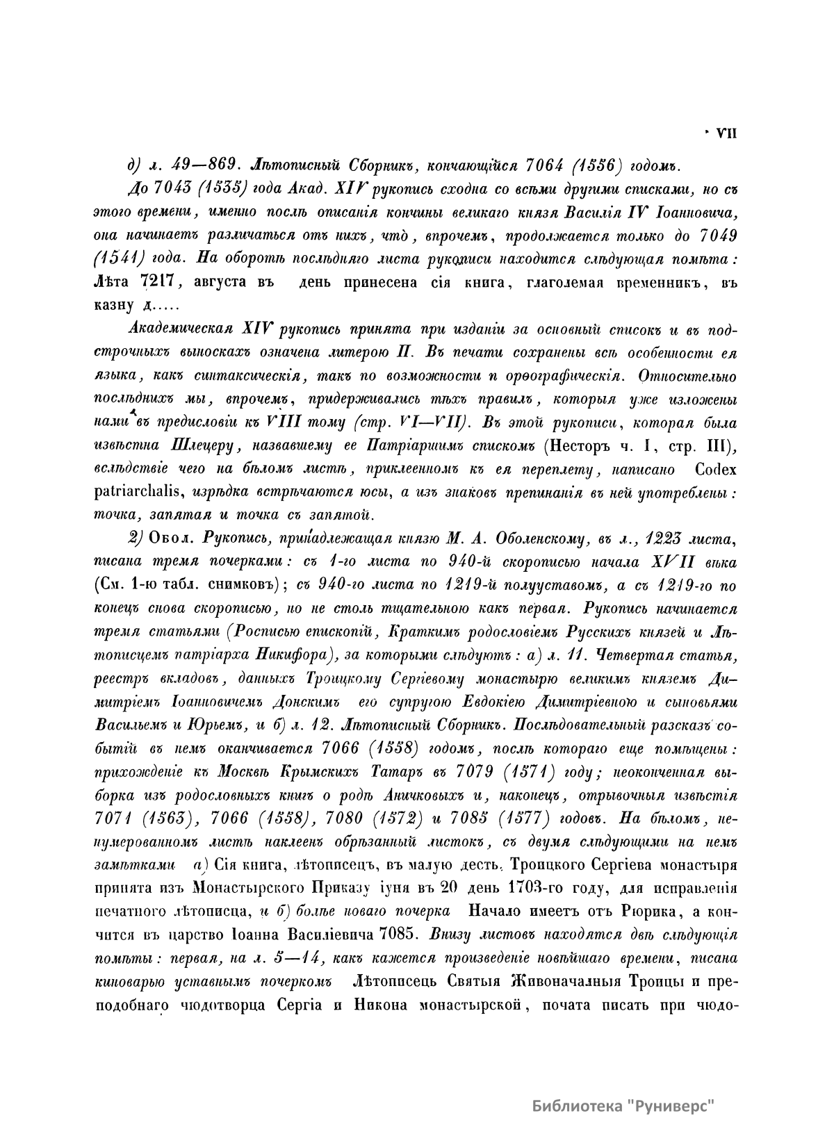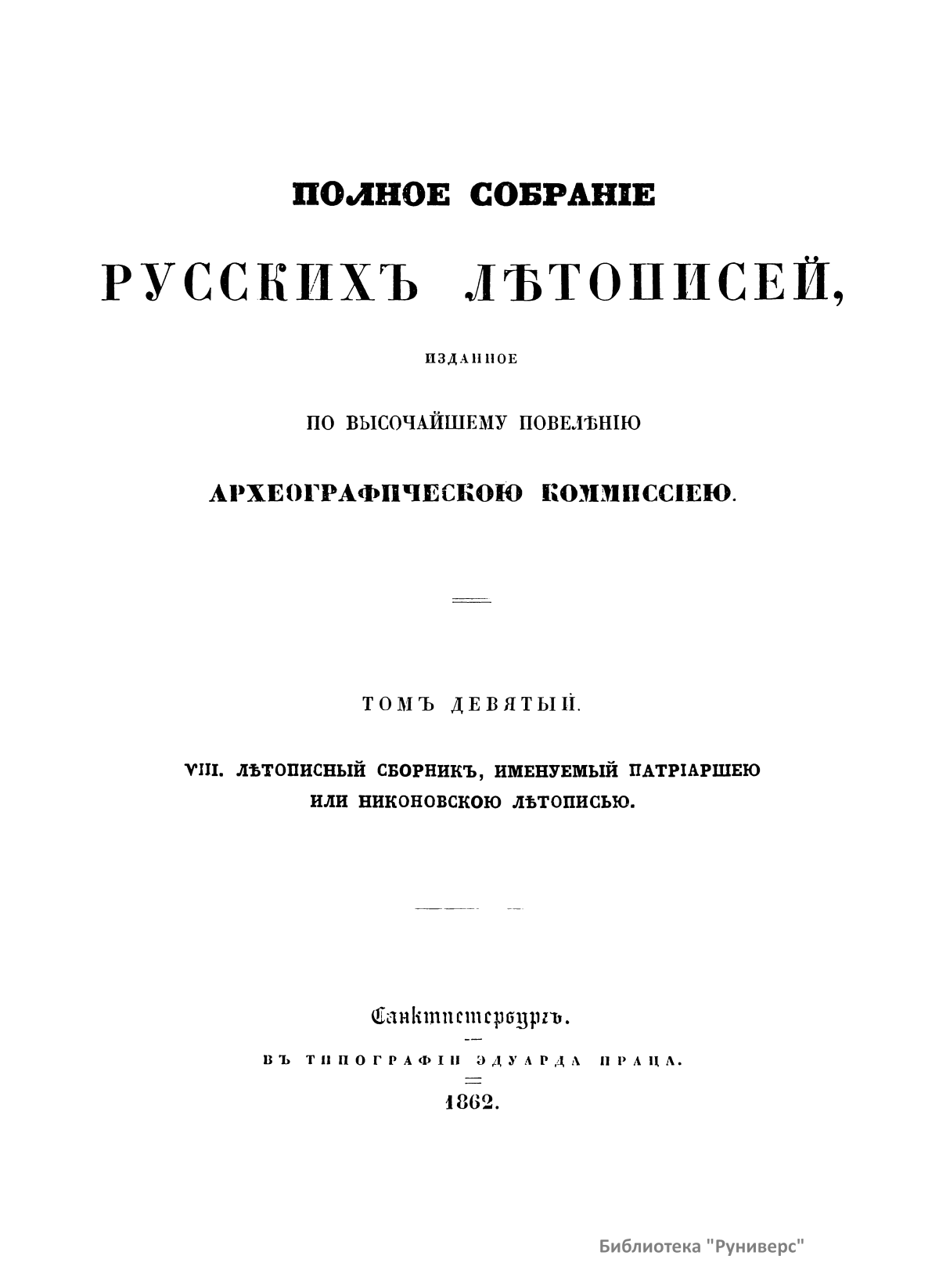 Полное собранiе русскихъ лѣтописей. Томъ девятый. VIII. Лѣтописный сборник, именуемый Патрiаршею или Никоновскою лѣтописью