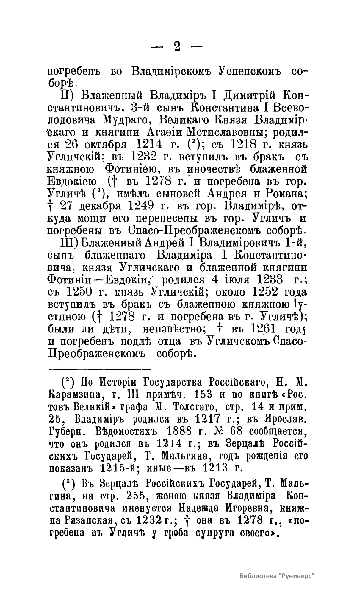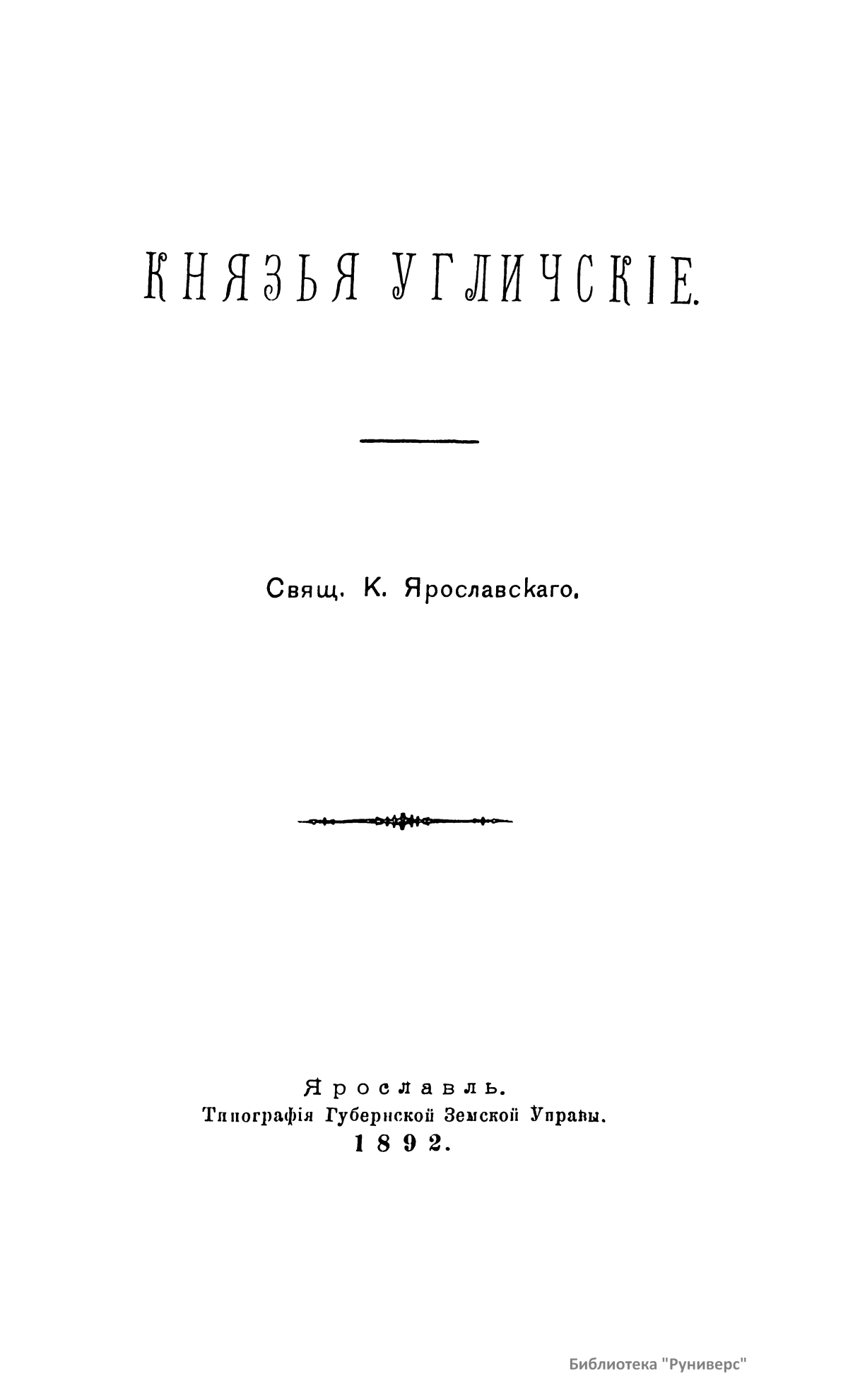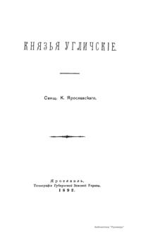 Брошюра содержит сведения об углических владетельных князьях из рода Великих князей владимирских; об углических владетельных князьях из рода Великих князей московских.