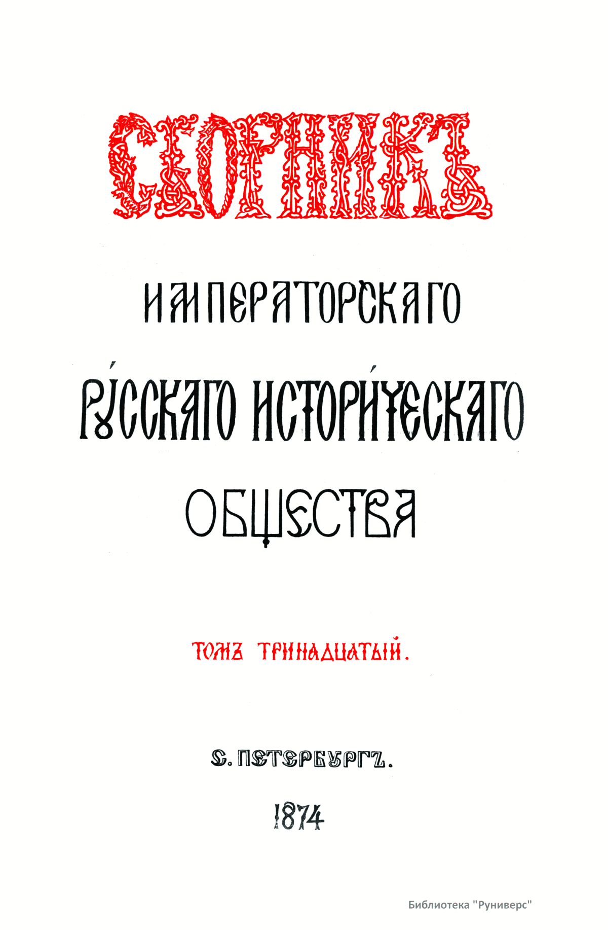 Сборникъ Русскаго историческаго общества. Томъ тринадцатый