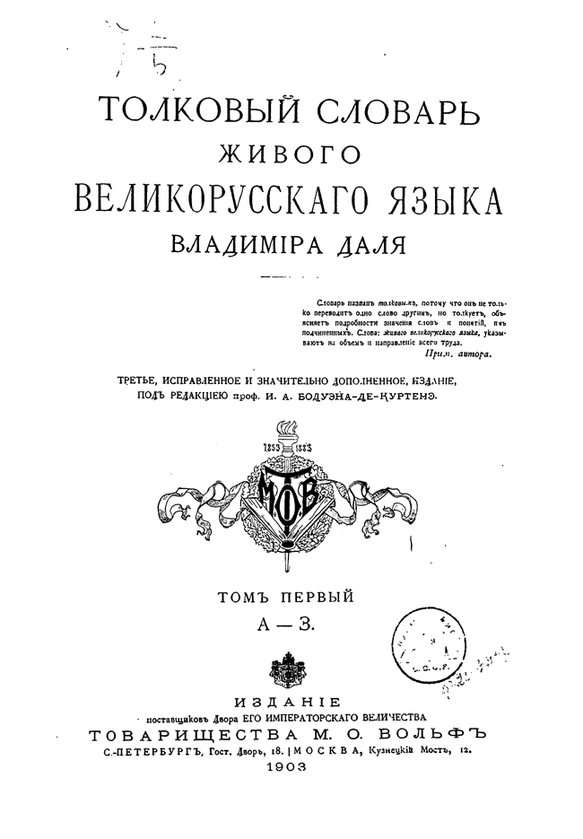 Толковый словарь живаго великорускаго языка Владимiра Даля