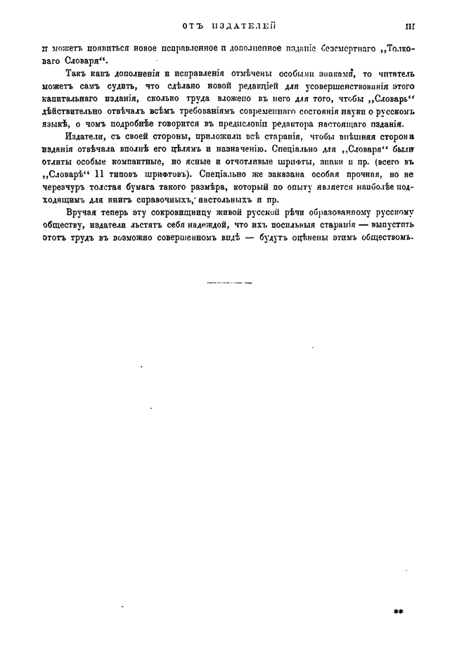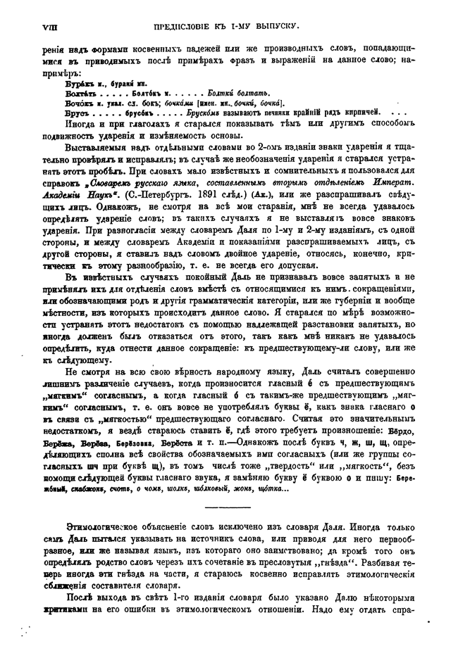Настоящее издание является третьим со времени выхода в свет в 1863 – 1866 гг. первого издания Толкового словаря живого великорусского языка. Наряду с лексикой литературного языка первой половины XIX века, то есть языка Пушкина и Гоголя, в словаре представлены областные слова, а также терминология разных профессий и ремёсел. Словарь содержит громадный иллюстративный материал, в котором первое место принадлежит пословицам и поговоркам. По оценке академика В. В. Виноградова, «как сокровищница меткого народного слова, словарь Даля будет спутником не только литератора, филолога, но и всякого образованного человека».