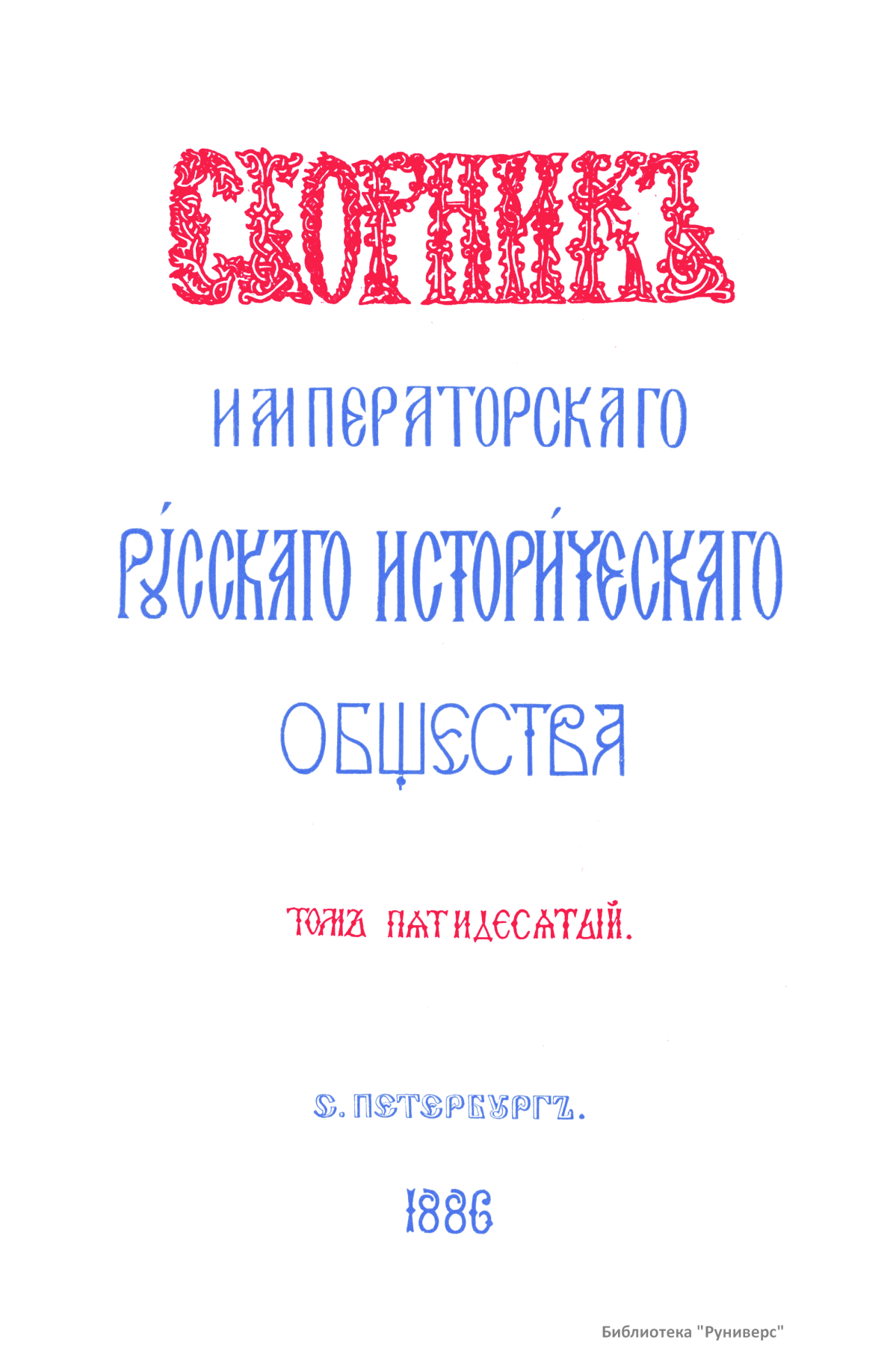 Сборникъ Русскаго историческаго общества. Томъ пятидесятый