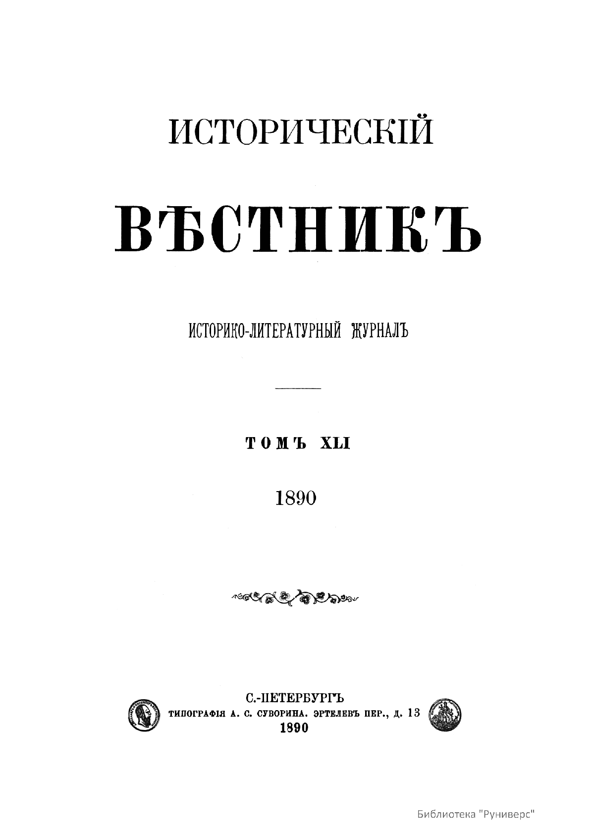 Исторический вестник. Историко-литературный журнал. Том XLI