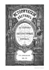 «Исторический вестник» - русский ежемесячный историко-литературный журнал. Издавался в Санкт-Петербурге с 1880-го по 1917 г. Журнал был основан А.С. Сувориным и С.Н. Шубинским с целью «знакомить читателей в живой, общедоступной форме с современным состоянием исторической науки и литературы в России и Европе». Вышло 150 тт. Каждый том состоял из трёх ежемесячных выпусков, имел свою нумерацию страниц, оглавление, список иллюстраций. Журнал приобрёл устойчивую популярность среди читателей, заняв прочное место в «триумвирате» русских исторических журналов наряду с «Русским архивом» и «Русской стариной». опережая их по количеству подписчиков. Отличием «Исторического вестника» было то, что он не помещал на своих страницах необработанных, сырых материалов. С другой стороны, журнал приближался по своему типу к журналам общелитературного образца, сочетая в себе коммерческий успех и доступное изложение материала.