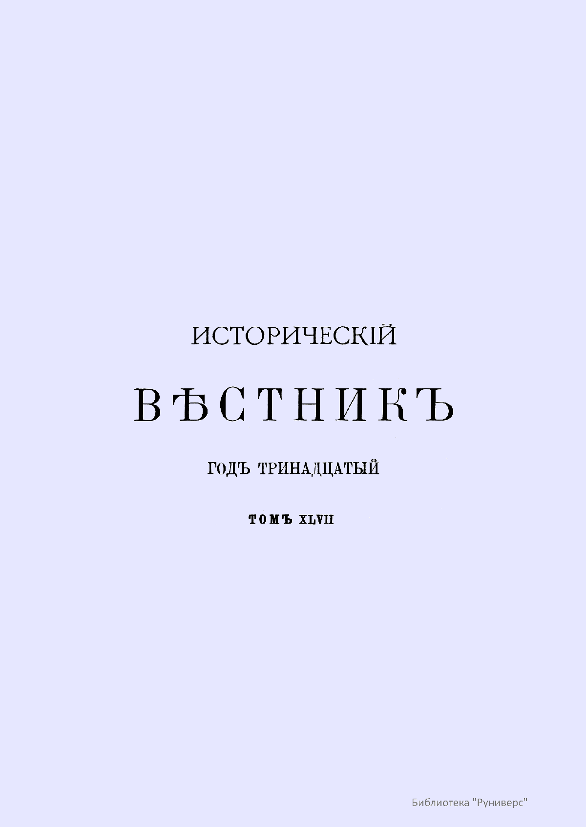 Исторический вестник. Историко-литературный журнал. Том XLVII