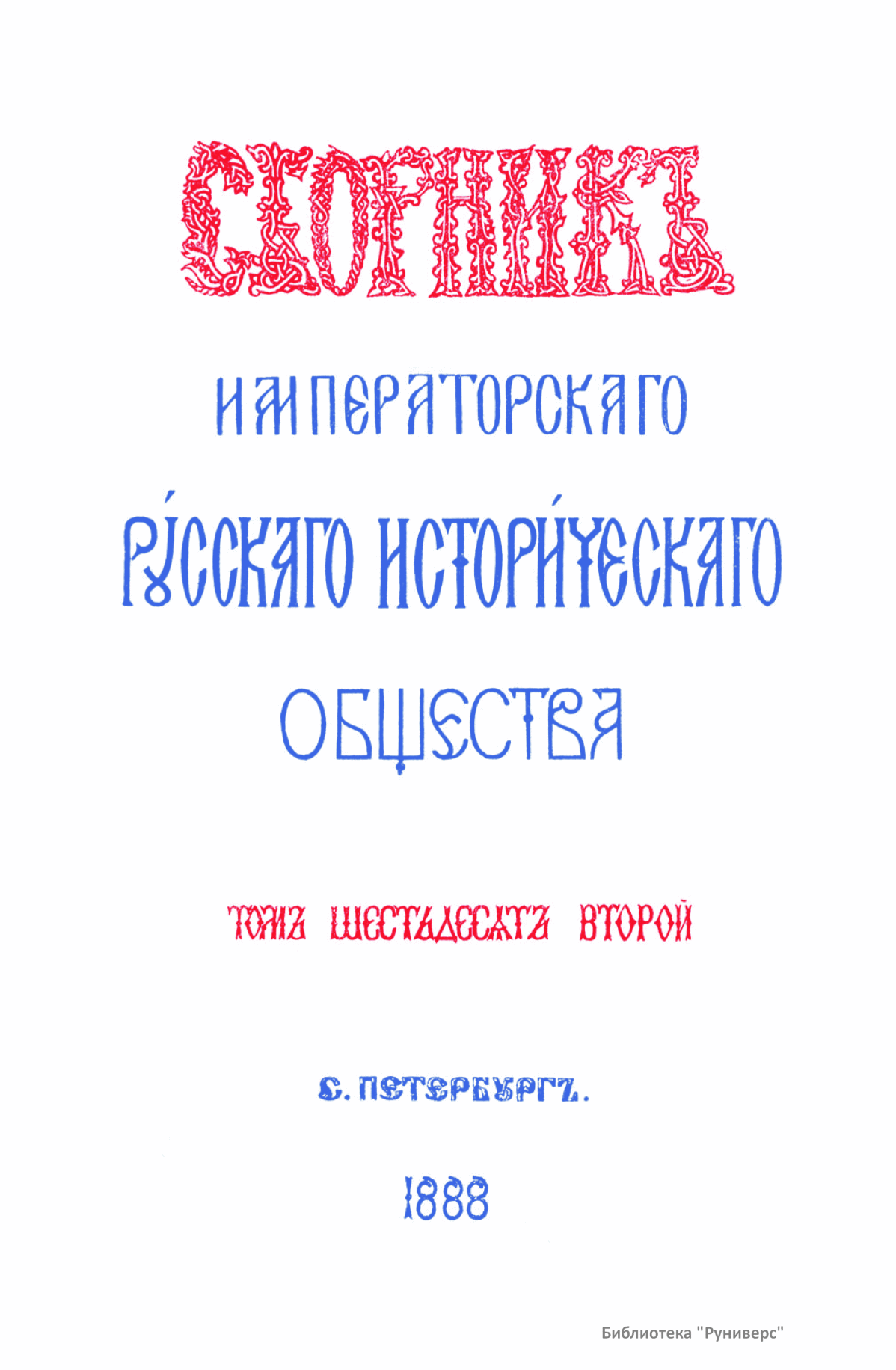 Сборникъ Русскаго историческаго общества. Томъ шестьдесятъ второй