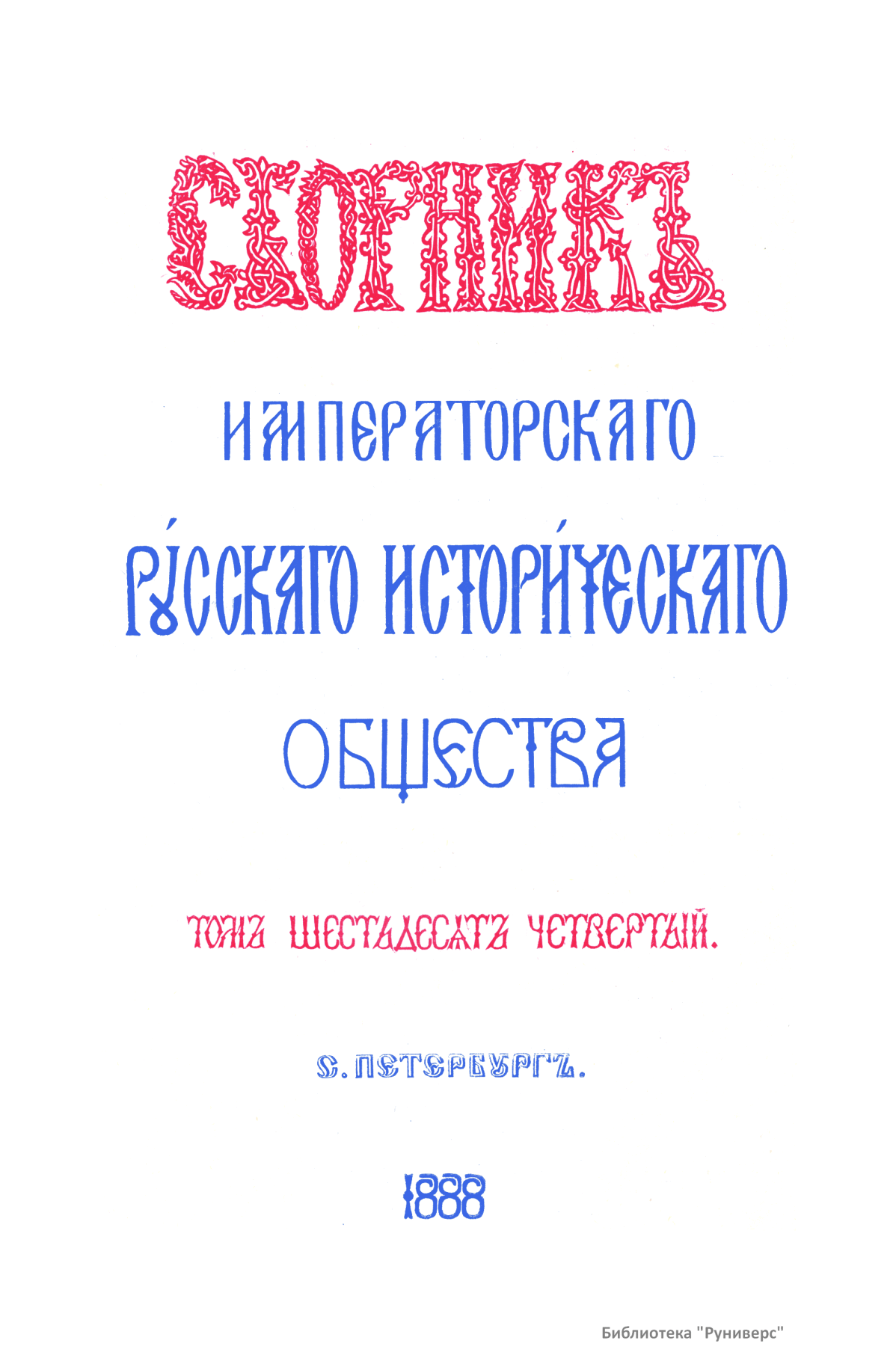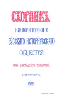 Сборникъ Русскаго историческаго общества. Томъ шестьдесятъ четвертый
