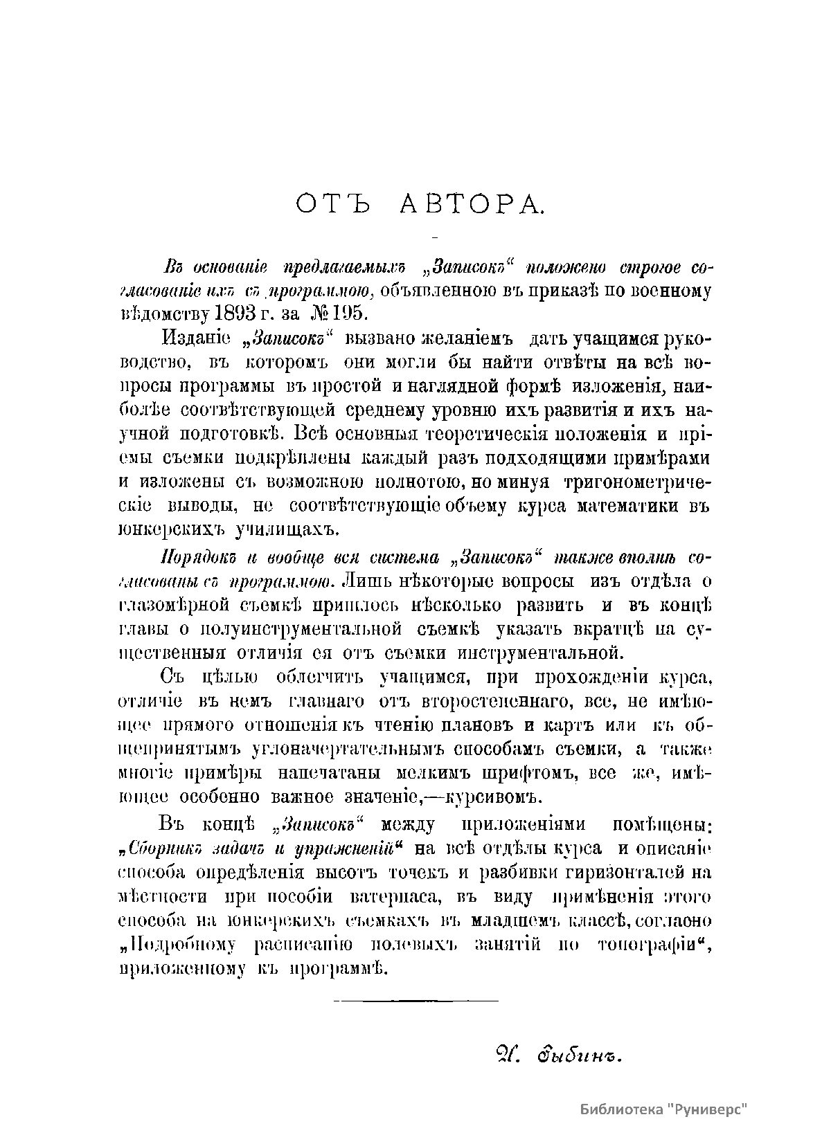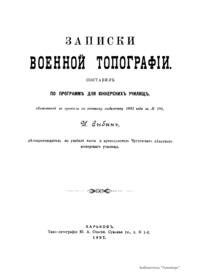 «Записки» составлены преподавателем Чугуевского пехотного юнкерского училища по программе для юнкерских училищ, объявленной в приказе по военному ведомству 1893 года. Издание вызвано желанием дать учащимся руководство, в котором они могли бы найти ответы на все вопросы программы в простой и наглядной форме изложения. Все основные теоретические положения и приемы съемки подкреплены каждый раз подходящими примерами и изложены с возможной полнотой, но минуя тригонометрические выводы, не соответствующие объему курса математики в юнкерских училищах. Все, не имеющее прямого отношения к чтению планов и карт или к общепринятым углоначертательным способам съемки, а также многие примеры напечатаны мелким шрифтом, все же, имеющее особо важное значение, – курсивом. Топография – географическое и геометрическое изучение местности путем проведения съемочных работ и создания на их основе топографических карт.