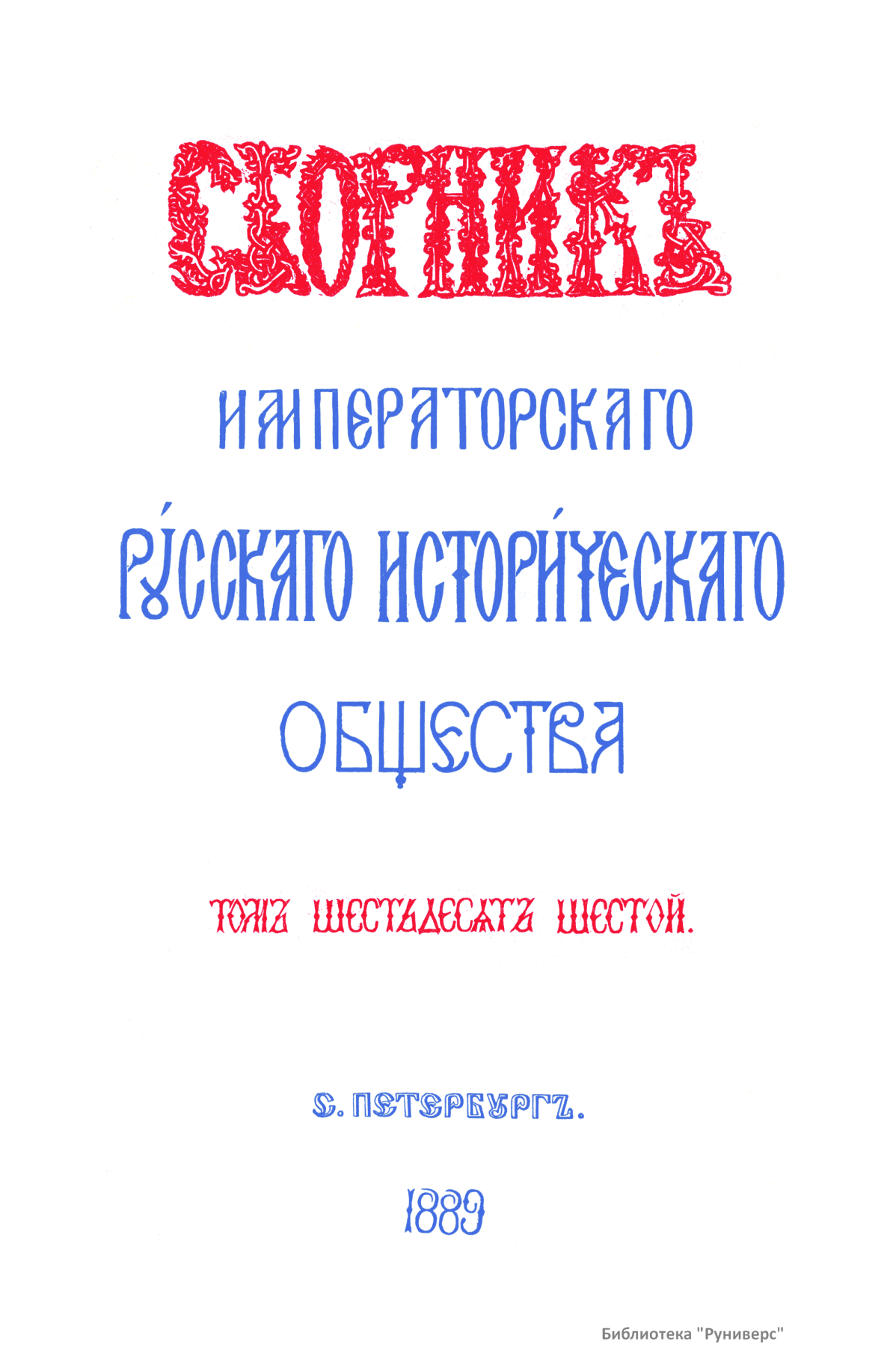 Сборникъ Русскаго историческаго общества. Томъ шестьдесятъ шестой