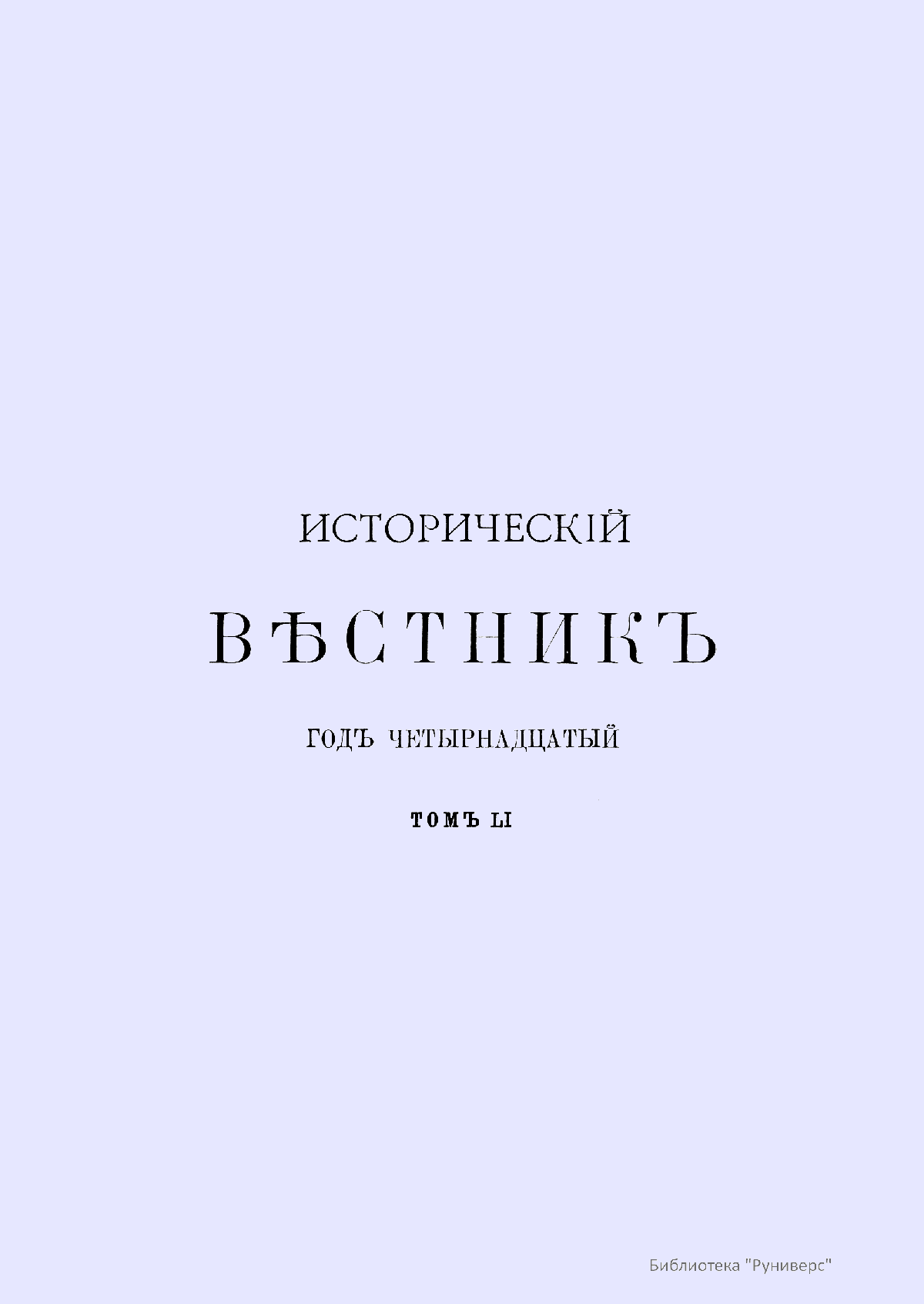 Исторический вестник. Историко-литературный журнал. Том LI
