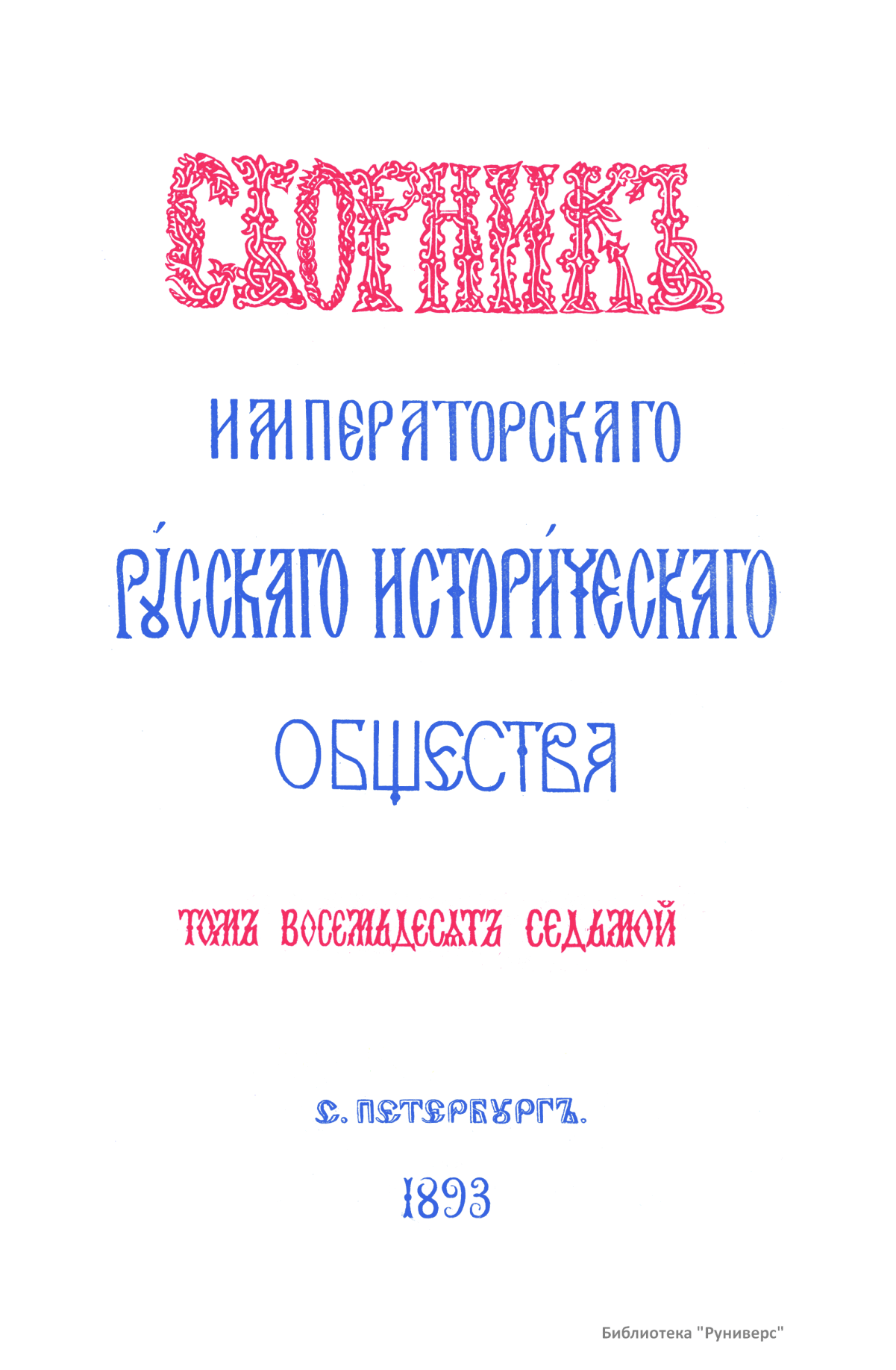 Сборникъ Русскаго историческаго общества. Томъ восемьдесятъ седьмой
