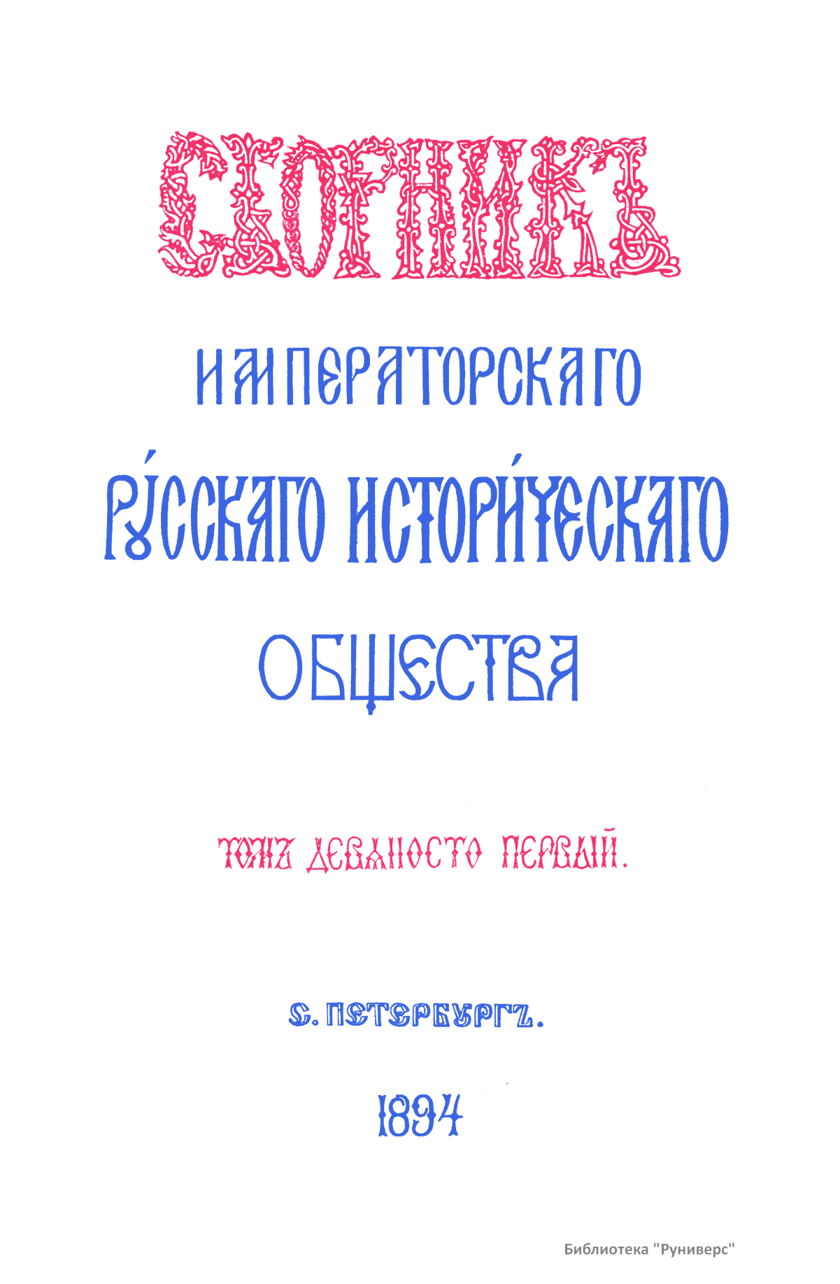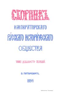 Сборникъ Русскаго историческаго общества. Томъ девяносто первый