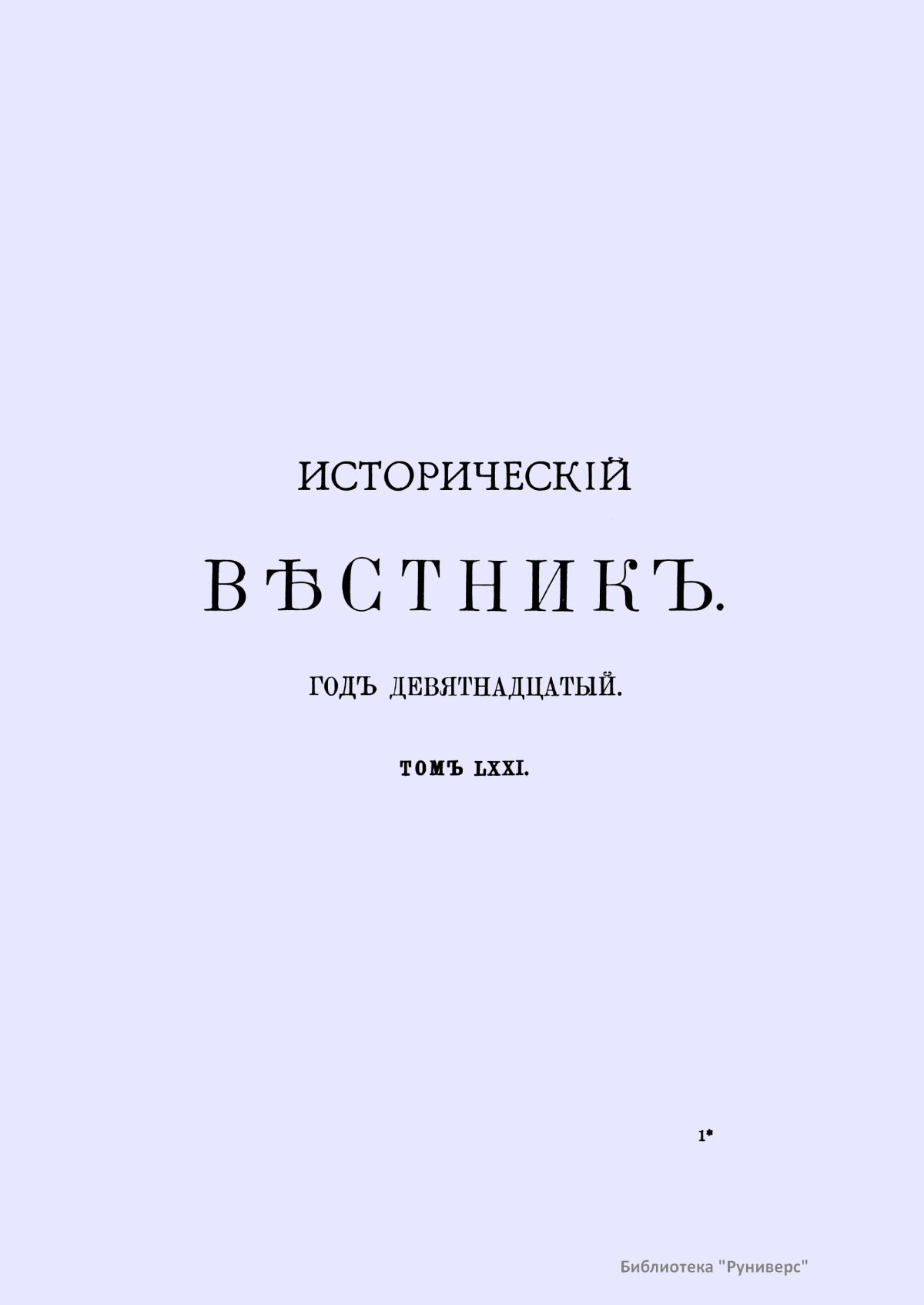 Исторический вестник. Историко-литературный журнал. Том LXXI