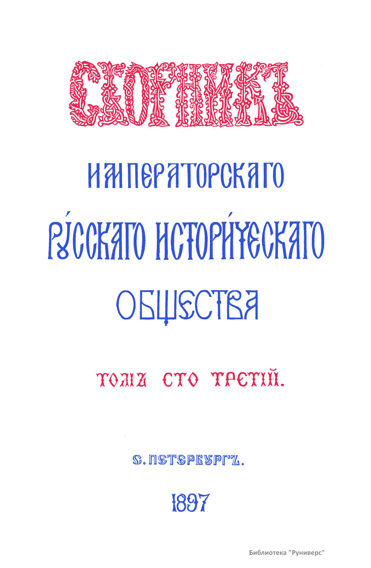 Сборникъ Русскаго историческаго общества. Томъ сто третiй