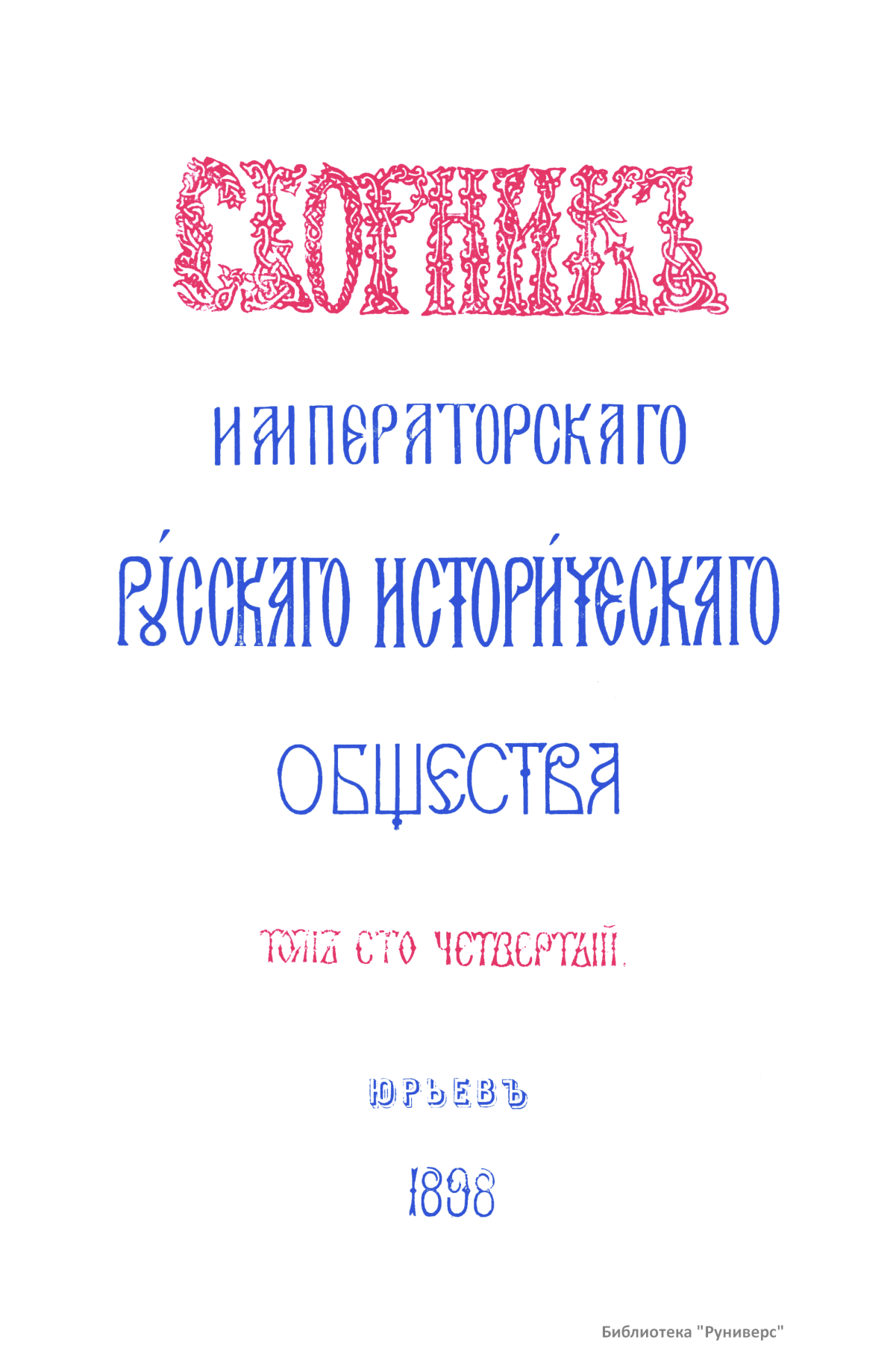 Сборникъ Русскаго историческаго общества. Томъ сто четвертый