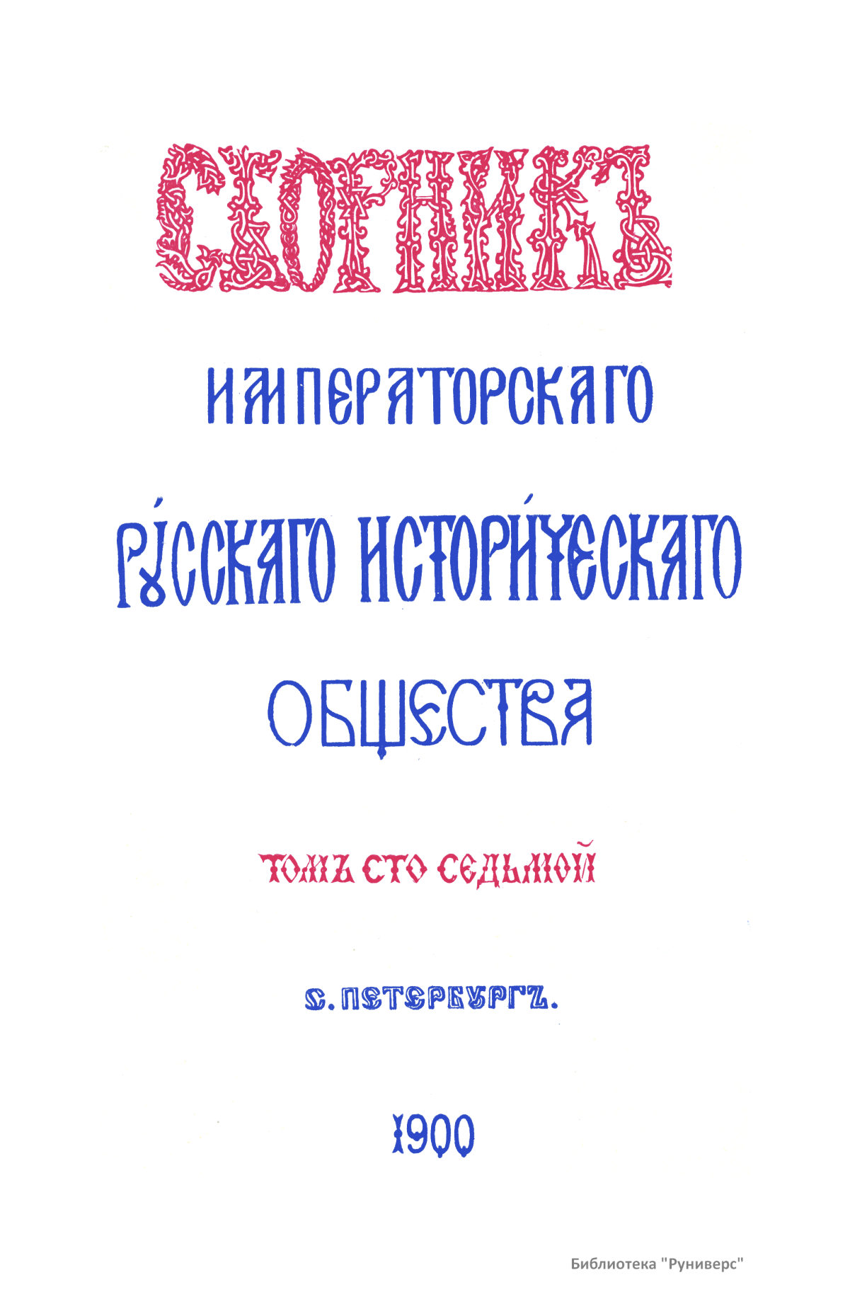 Сборникъ Русскаго историческаго общества. Томъ сто седьмой
