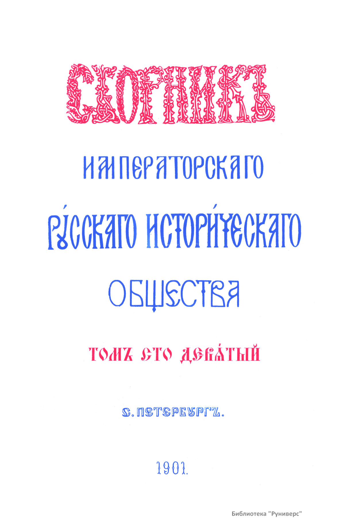 Сборникъ Русскаго историческаго общества. Томъ сто девятый