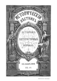 «Исторический вестник» - русский ежемесячный историко-литературный журнал. Издавался в Санкт-Петербурге с 1880-го по 1917 г. Журнал был основан А.С. Сувориным и С.Н. Шубинским с целью «знакомить читателей в живой, общедоступной форме с современным состоянием исторической науки и литературы в России и Европе». Вышло 150 тт. Каждый том состоял из трёх ежемесячных выпусков, имел свою нумерацию страниц, оглавление, список иллюстраций. Журнал приобрёл устойчивую популярность среди читателей, заняв прочное место в «триумвирате» русских исторических журналов наряду с «Русским архивом» и «Русской стариной». опережая их по количеству подписчиков. Отличием «Исторического вестника» было то, что он не помещал на своих страницах необработанных, сырых материалов. С другой стороны, журнал приближался по своему типу к журналам общелитературного образца, сочетая в себе коммерческий успех и доступное изложение материала.