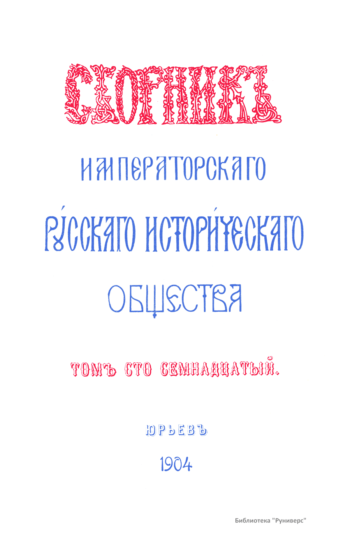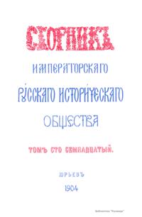 Сборникъ Русскаго историческаго общества. Томъ сто семнадцатый