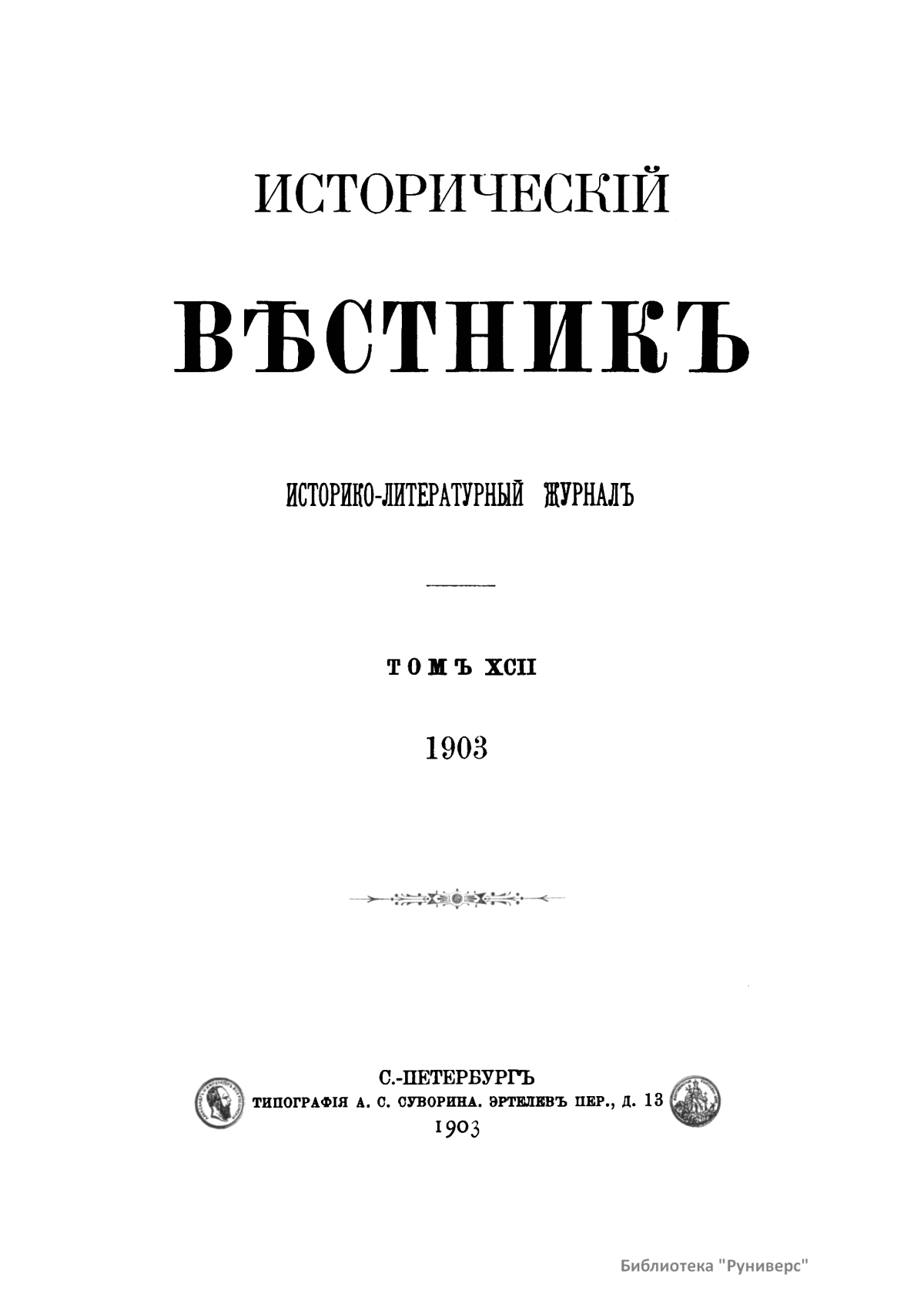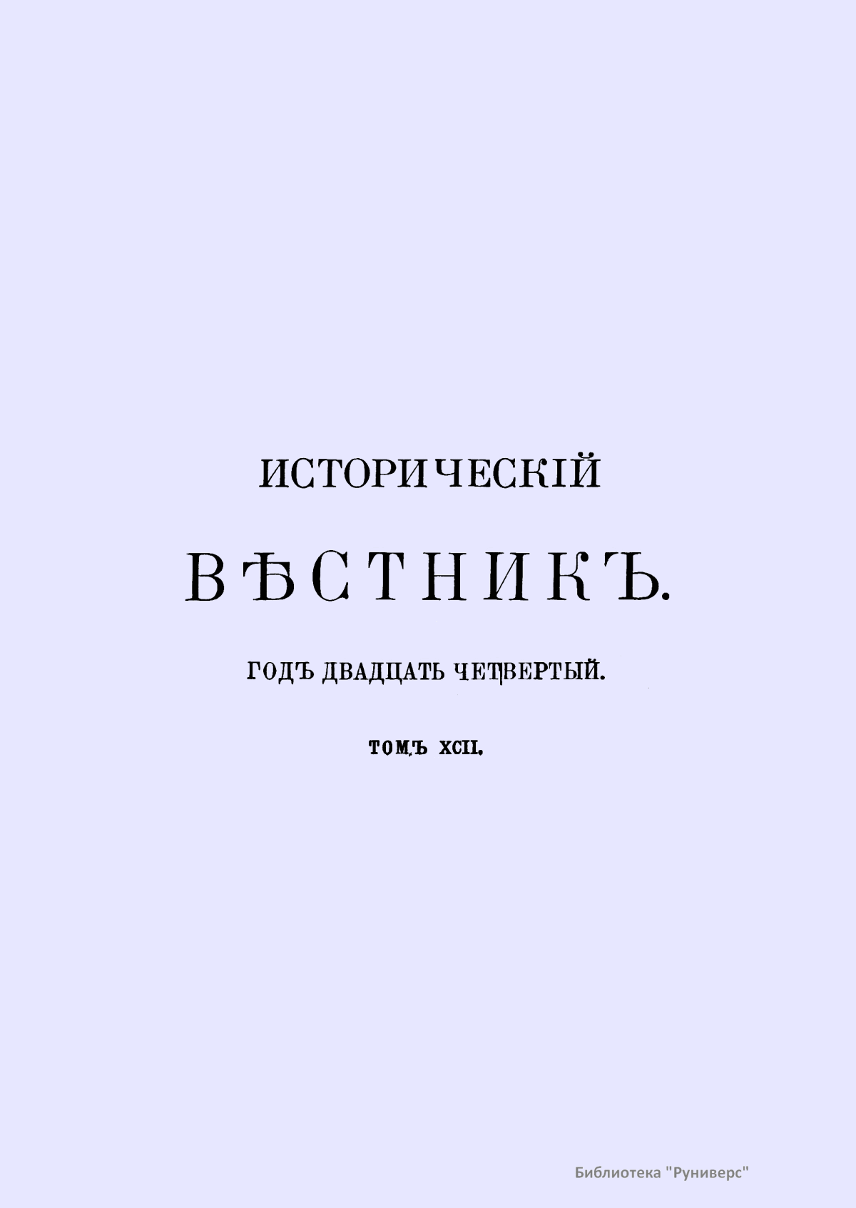 Историческiй вѣстникъ. Историко-литературный журналъ. Томъ XCII