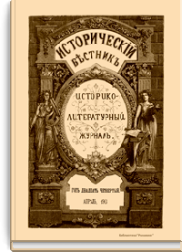 «Исторический вестник» - русский ежемесячный историко-литературный журнал. Издавался в Санкт-Петербурге с 1880-го по 1917 г. Журнал был основан А.С. Сувориным и С.Н. Шубинским с целью «знакомить читателей в живой, общедоступной форме с современным состоянием исторической науки и литературы в России и Европе». Вышло 150 тт. Каждый том состоял из трёх ежемесячных выпусков, имел свою нумерацию страниц, оглавление, список иллюстраций. Журнал приобрёл устойчивую популярность среди читателей, заняв прочное место в «триумвирате» русских исторических журналов наряду с «Русским архивом» и «Русской стариной». опережая их по количеству подписчиков. Отличием «Исторического вестника» было то, что он не помещал на своих страницах необработанных, сырых материалов. С другой стороны, журнал приближался по своему типу к журналам общелитературного образца, сочетая в себе коммерческий успех и доступное изложение материала.