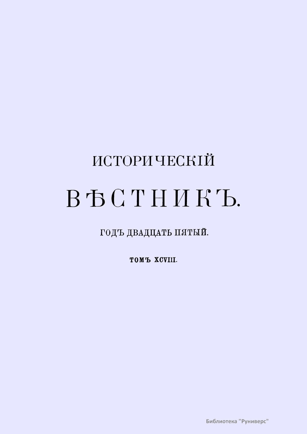 Исторический вестник. Историко-литературный журнал. Том XCVIII