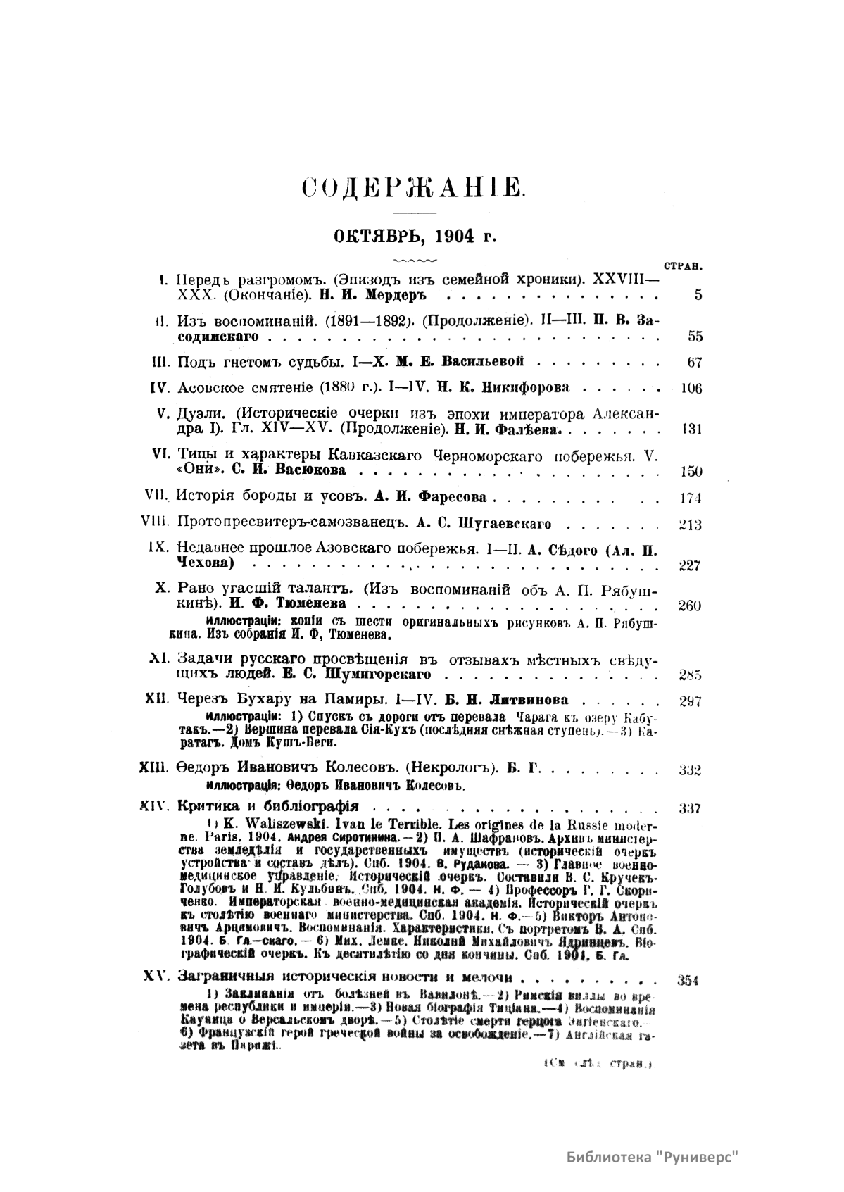 Историческiй вѣстникъ. Историко-литературный журналъ. Томъ XCVIII