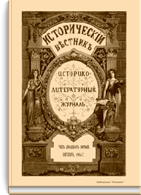 «Исторический вестник» - русский ежемесячный историко-литературный журнал. Издавался в Санкт-Петербурге с 1880-го по 1917 г. Журнал был основан А.С. Сувориным и С.Н. Шубинским с целью «знакомить читателей в живой, общедоступной форме с современным состоянием исторической науки и литературы в России и Европе». Вышло 150 тт. Каждый том состоял из трёх ежемесячных выпусков, имел свою нумерацию страниц, оглавление, список иллюстраций. Журнал приобрёл устойчивую популярность среди читателей, заняв прочное место в «триумвирате» русских исторических журналов наряду с «Русским архивом» и «Русской стариной». опережая их по количеству подписчиков. Отличием «Исторического вестника» было то, что он не помещал на своих страницах необработанных, сырых материалов. С другой стороны, журнал приближался по своему типу к журналам общелитературного образца, сочетая в себе коммерческий успех и доступное изложение материала.