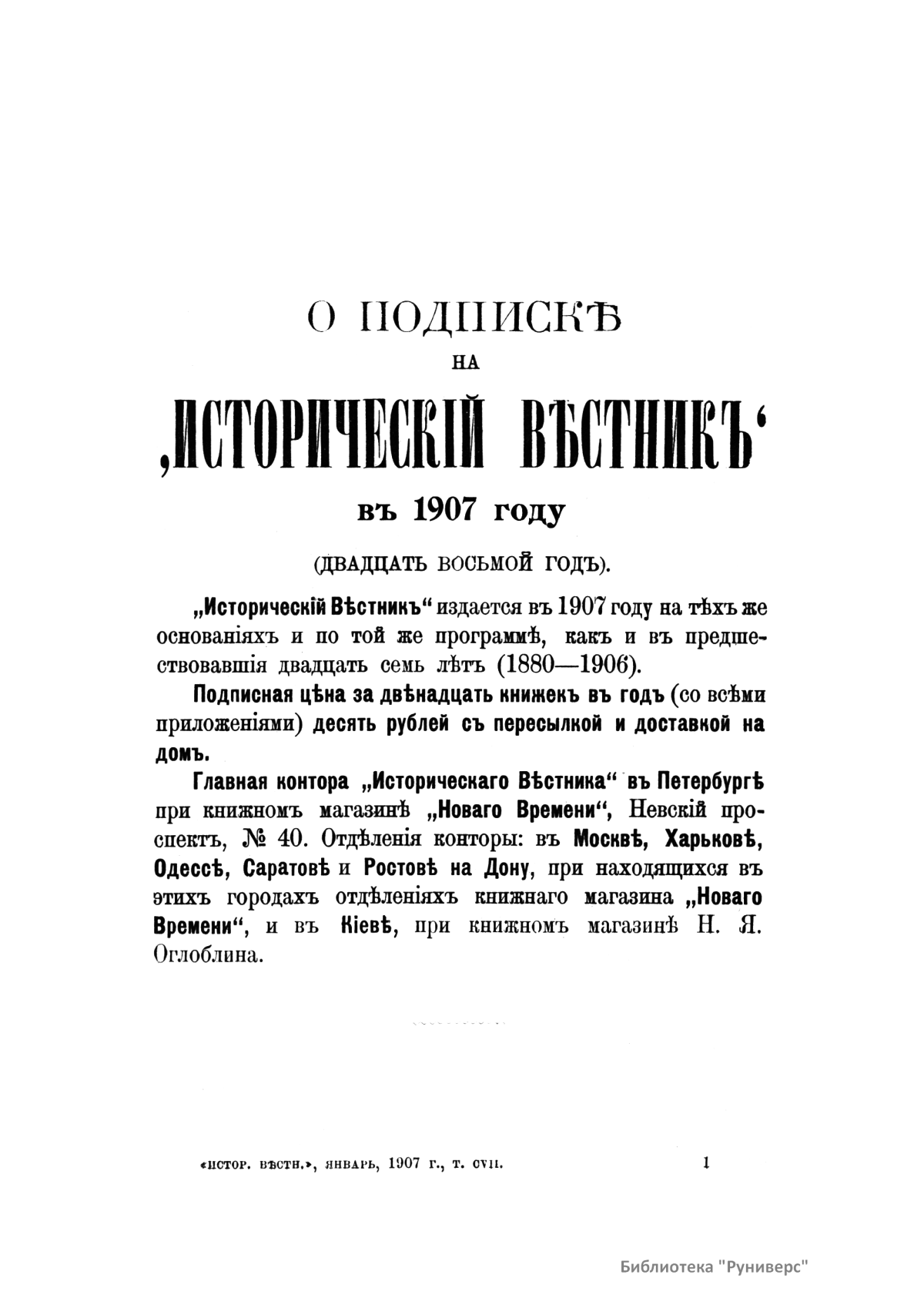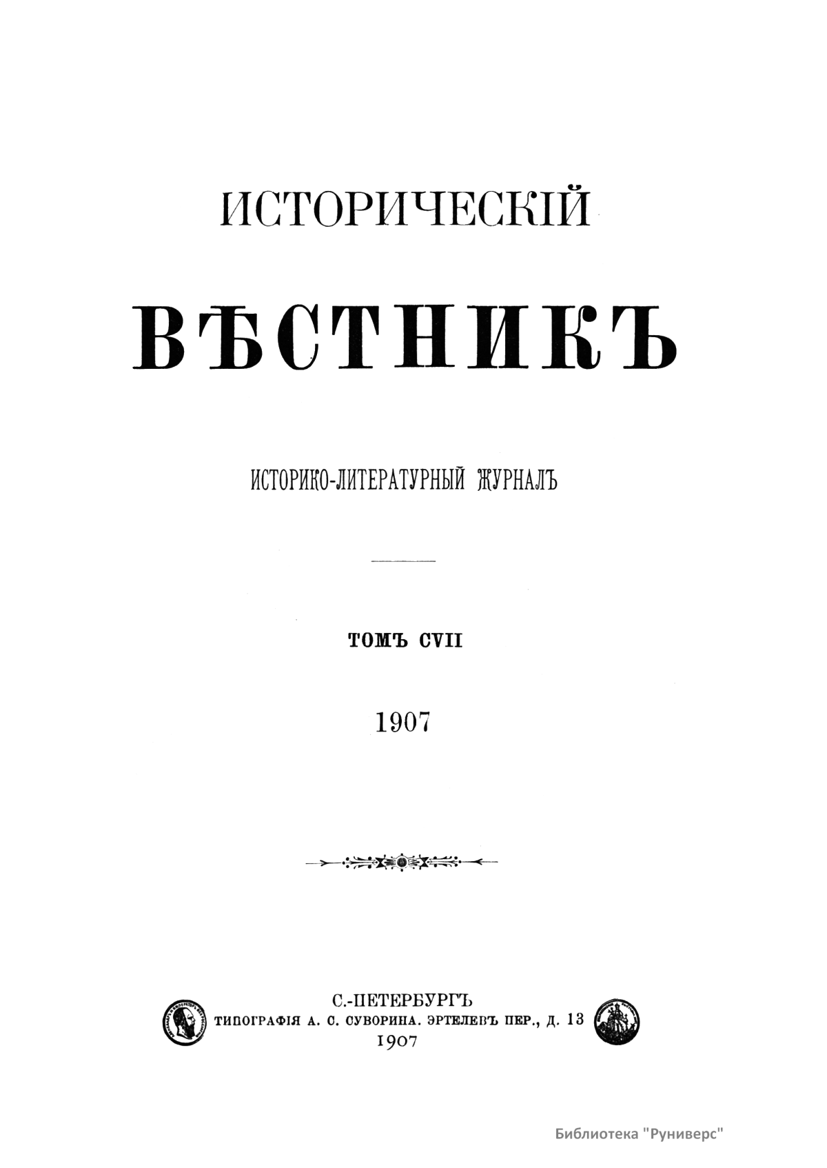 Исторический вестник. Историко-литературный журнал. Том CVII