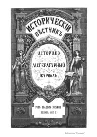 «Исторический вестник» - русский ежемесячный историко-литературный журнал. Издавался в Санкт-Петербурге с 1880-го по 1917 г. Журнал был основан А.С. Сувориным и С.Н. Шубинским с целью «знакомить читателей в живой, общедоступной форме с современным состоянием исторической науки и литературы в России и Европе». Вышло 150 тт. Каждый том состоял из трёх ежемесячных выпусков, имел свою нумерацию страниц, оглавление, список иллюстраций. Журнал приобрёл устойчивую популярность среди читателей, заняв прочное место в «триумвирате» русских исторических журналов наряду с «Русским архивом» и «Русской стариной». опережая их по количеству подписчиков. Отличием «Исторического вестника» было то, что он не помещал на своих страницах необработанных, сырых материалов. С другой стороны, журнал приближался по своему типу к журналам общелитературного образца, сочетая в себе коммерческий успех и доступное изложение материала.